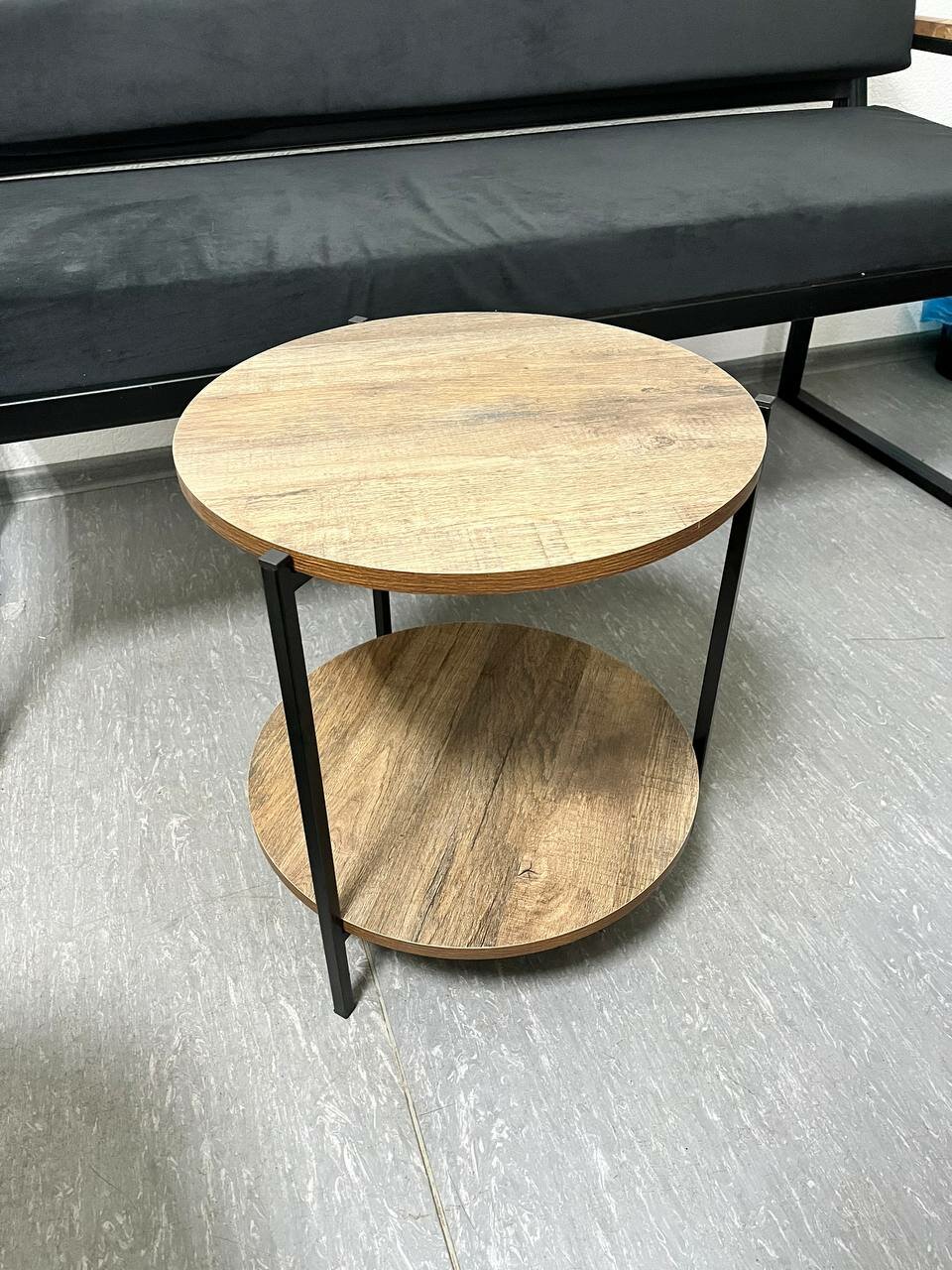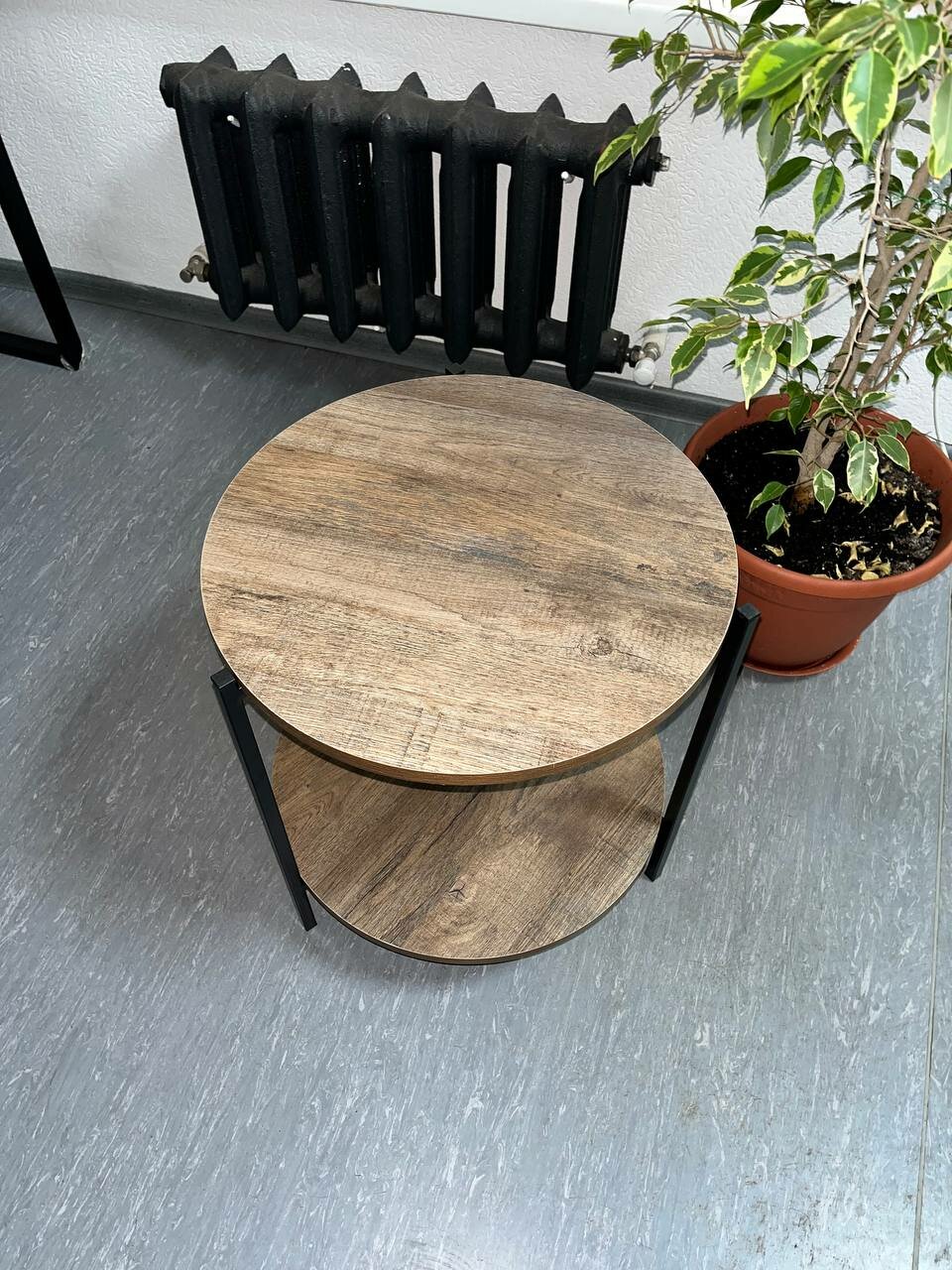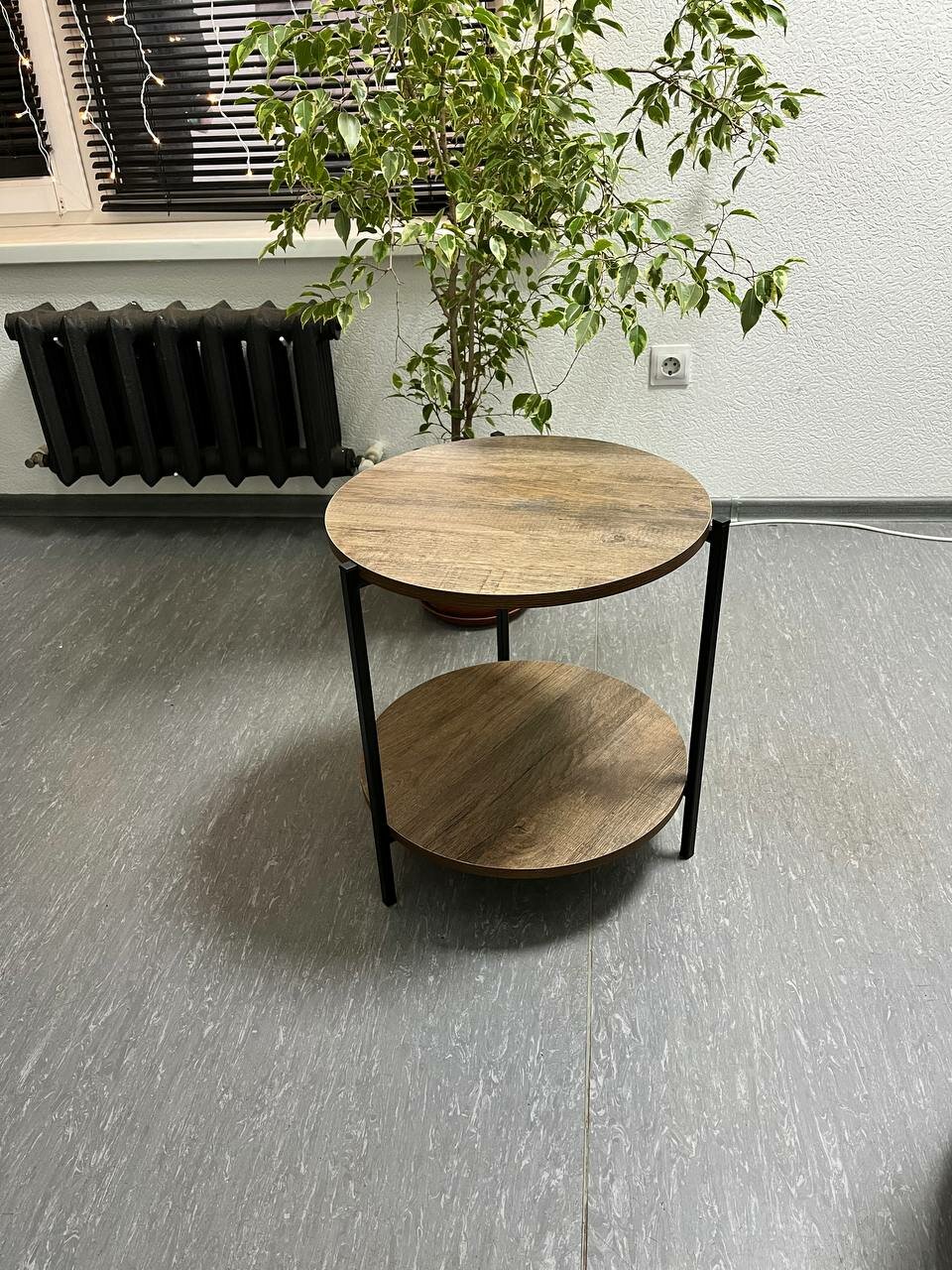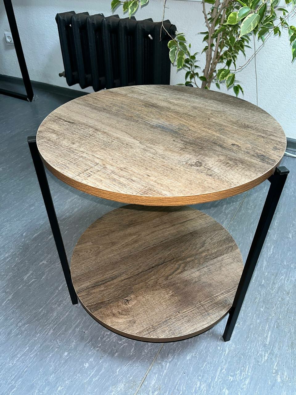 Столик журнальный круглый кофейный, прикроватный с полкой Лофт "таксония" 50х50х45