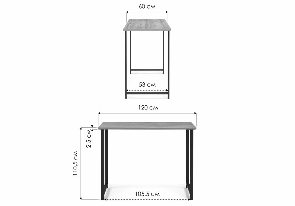 Стол Лайфмебель Тринити Лофт 120x80x75 25 мм дуб вотан / черный матовый