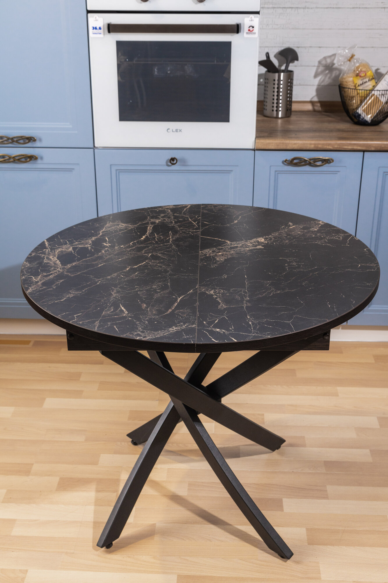 Стол круглый кухонный раздвижной мрамор 90*90(120)*80