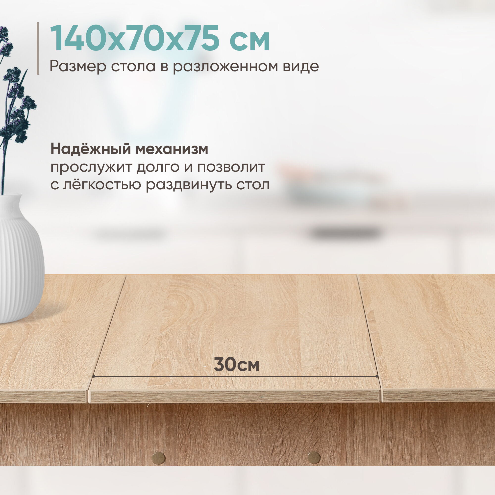 Стол кухонный обеденный раздвижной Европейский, Дуб сонома, ЛДСП, 110-140х70х75 см