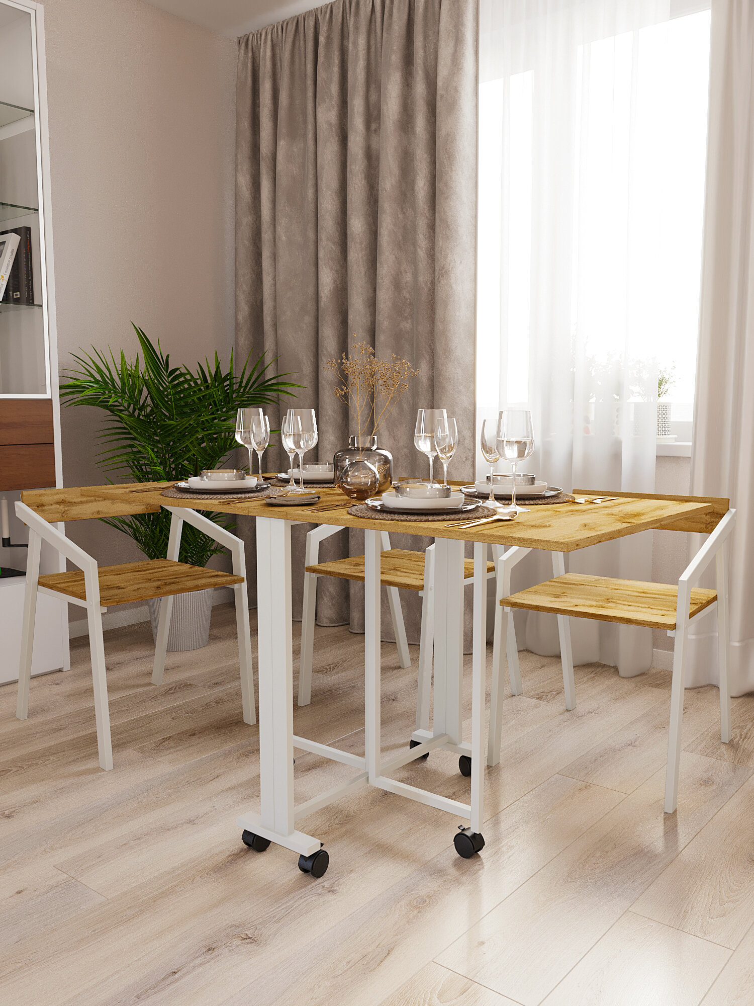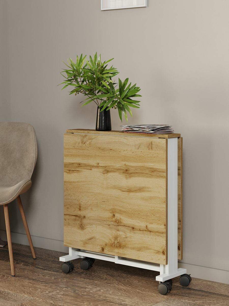 Стол-книжка для кухни и гостиной раскладной узкий компактный KM LOFT белый/вотан