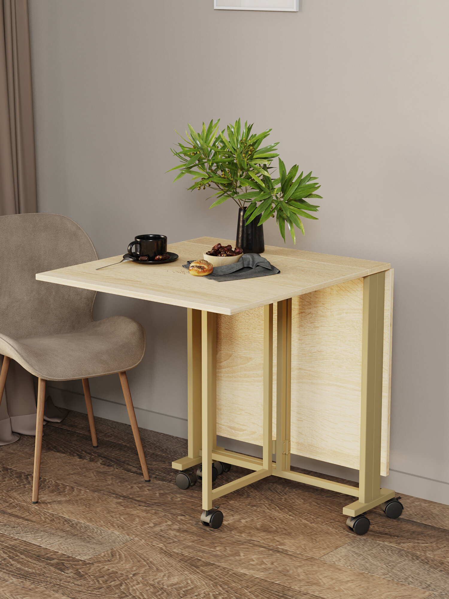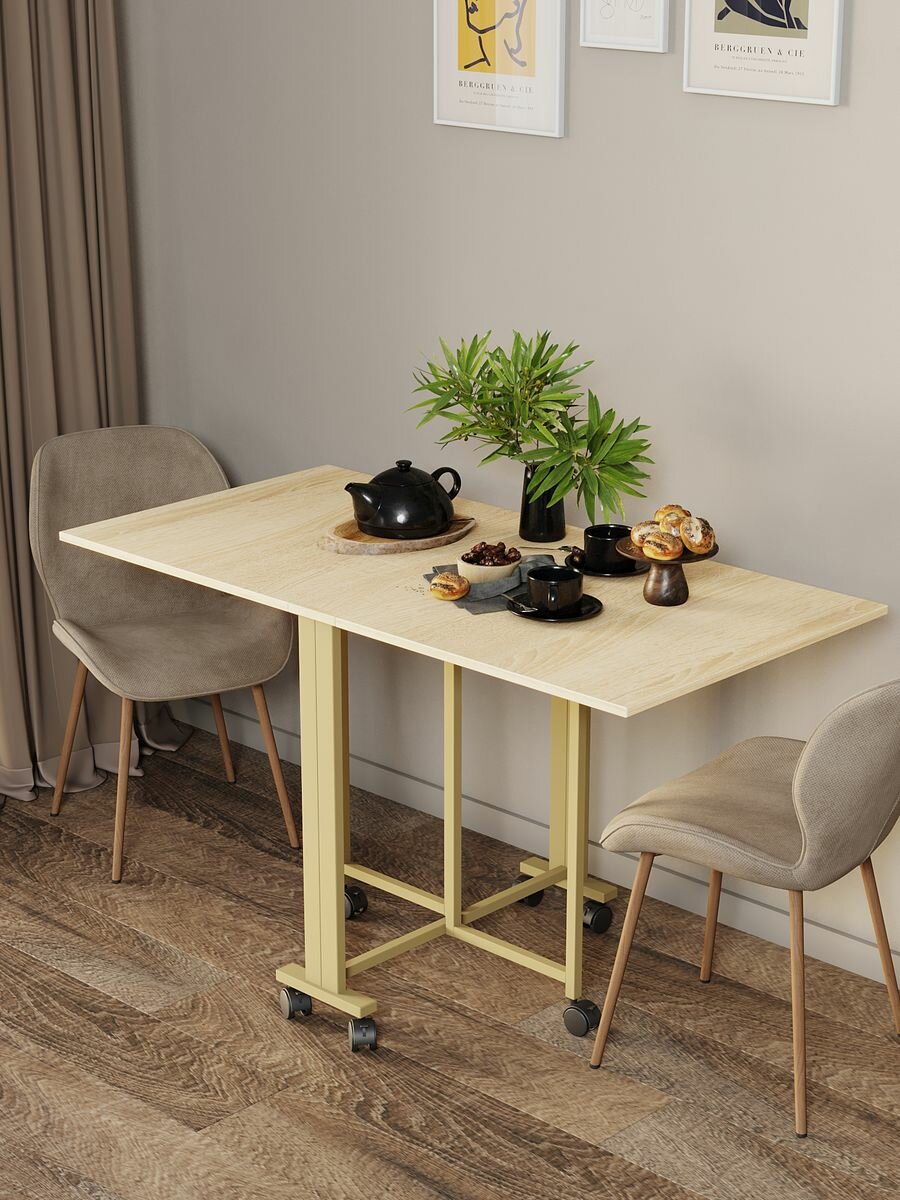 Стол-книжка для кухни и гостиной раскладной узкий компактный KM LOFT золотой/вотан