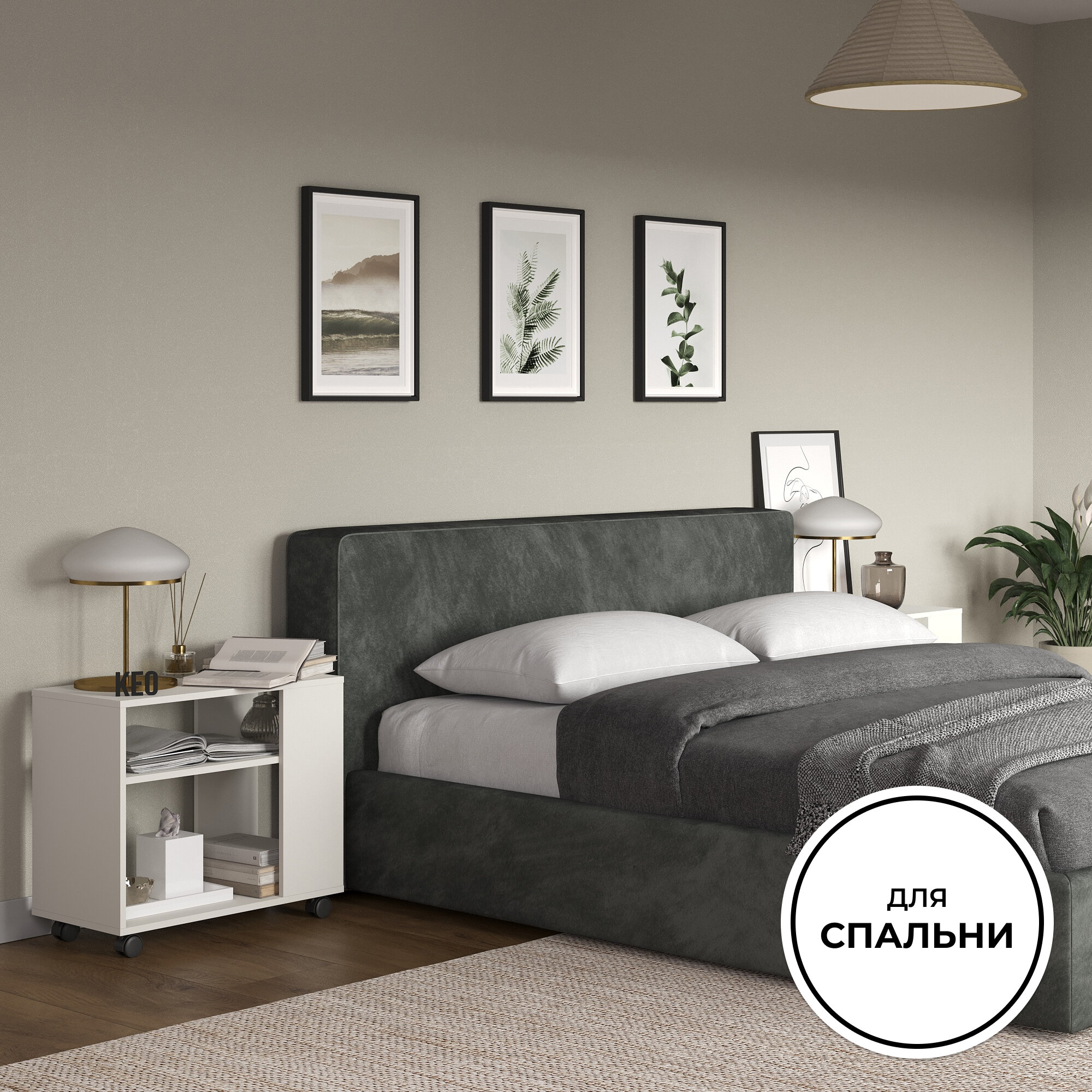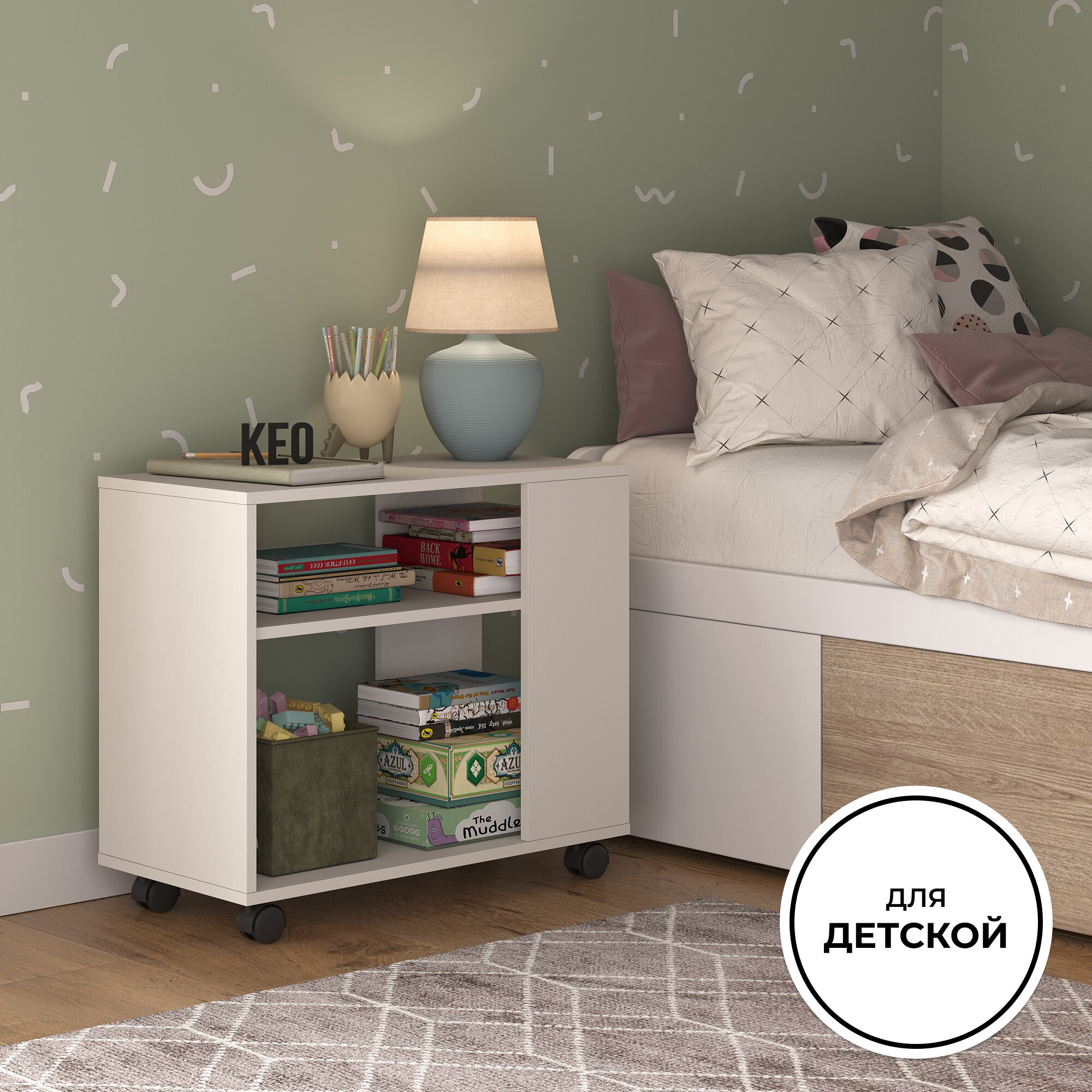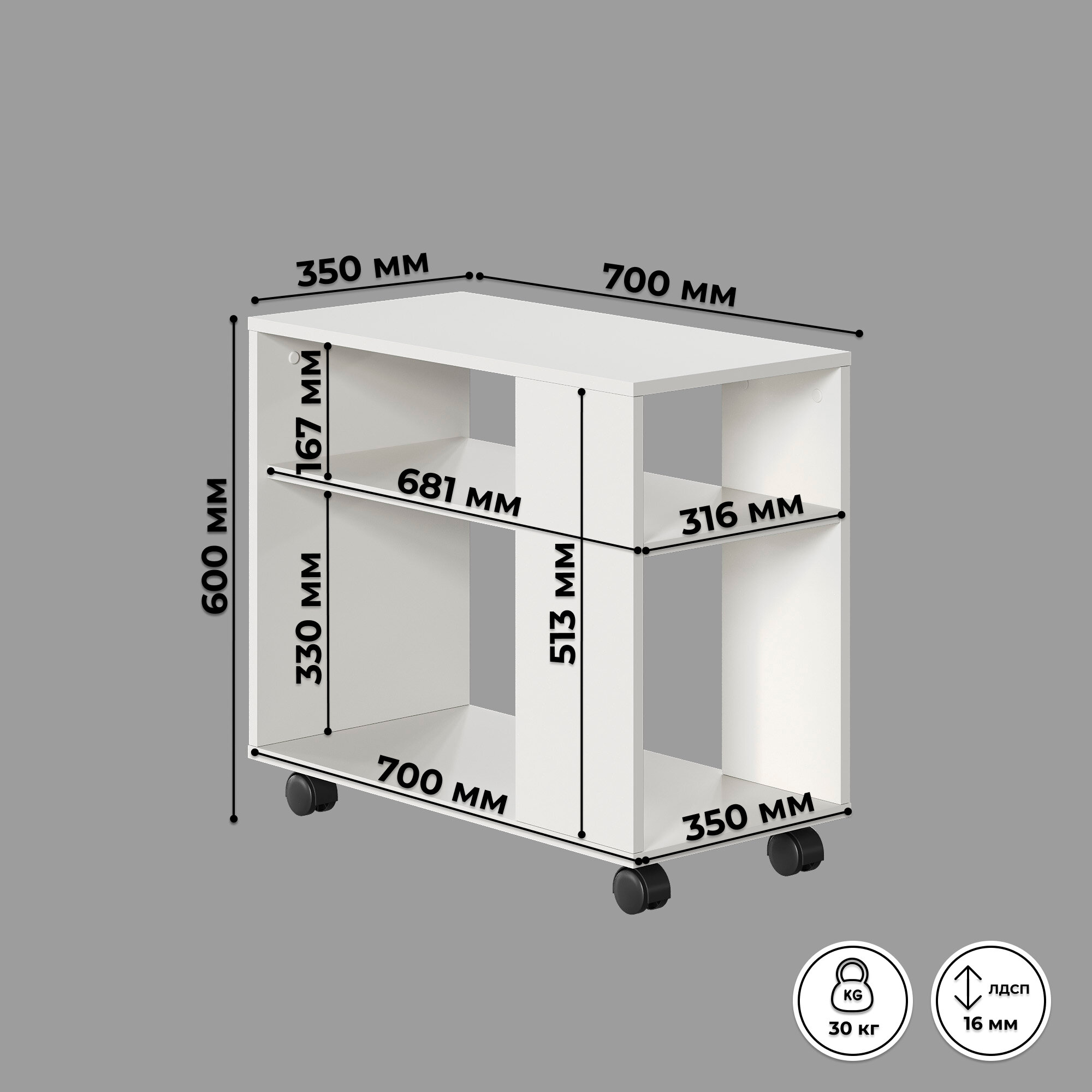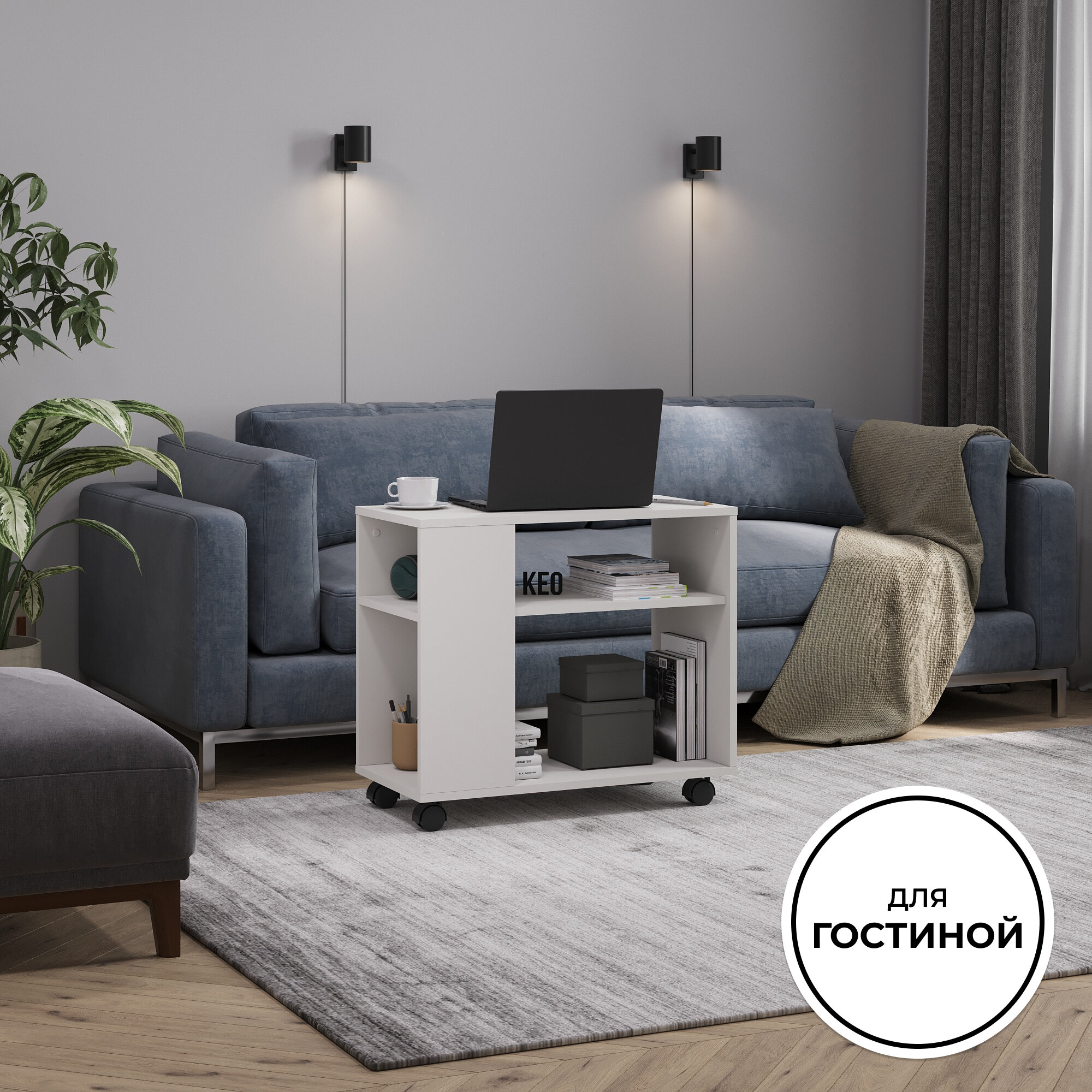 Журнальный столик на колесиках прикроватный КЕО КТМ-26 белый (молочный) ШхГхВ: 35х70х60 см приставной журнальный стол низкий в гостиную спальню интересное: