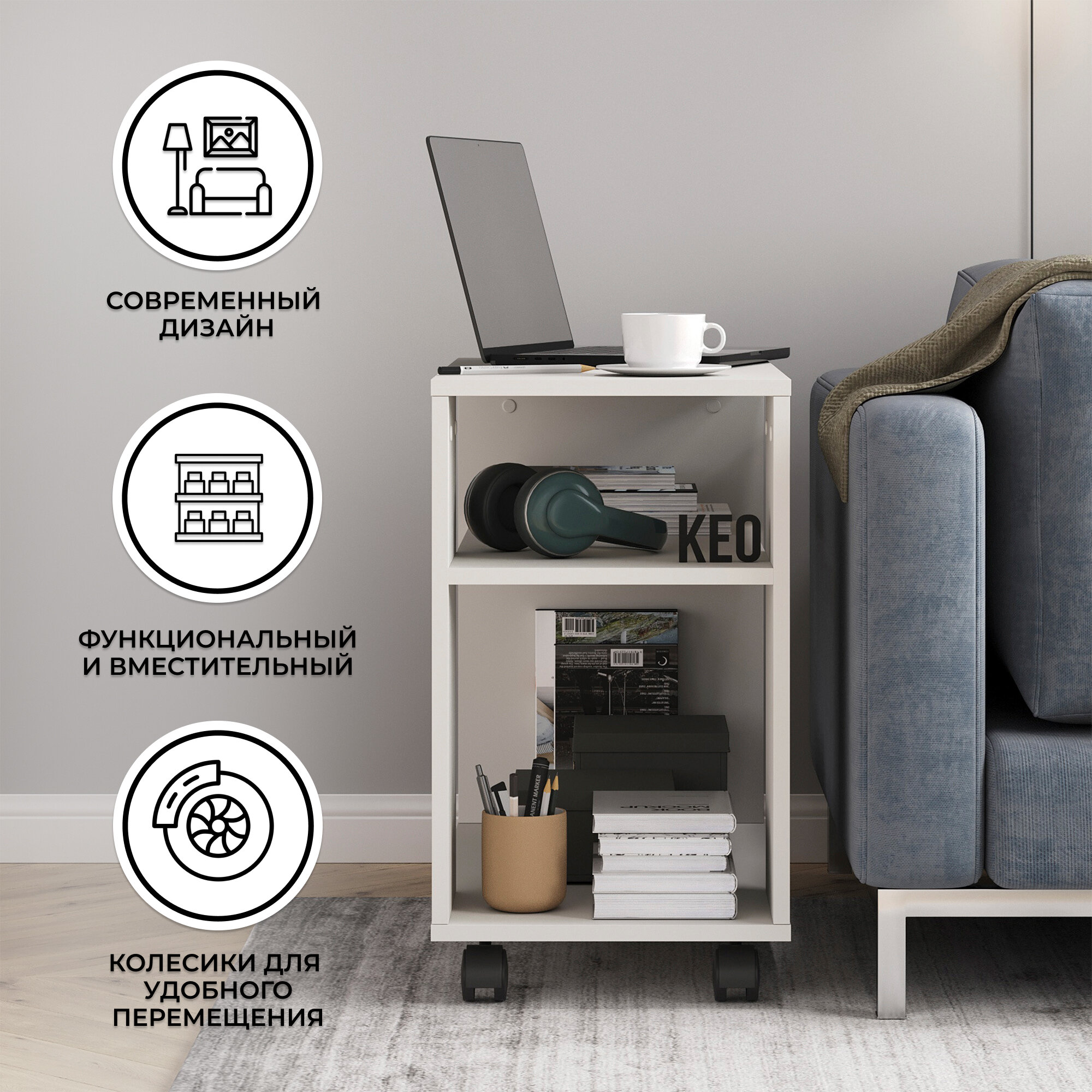 Купить Журнальный столик на колесиках прикроватный КЕО КТМ-26 белый (молочный) ШхГхВ: 35х70х60 см приставной журнальный стол низкий в гостиную спальню