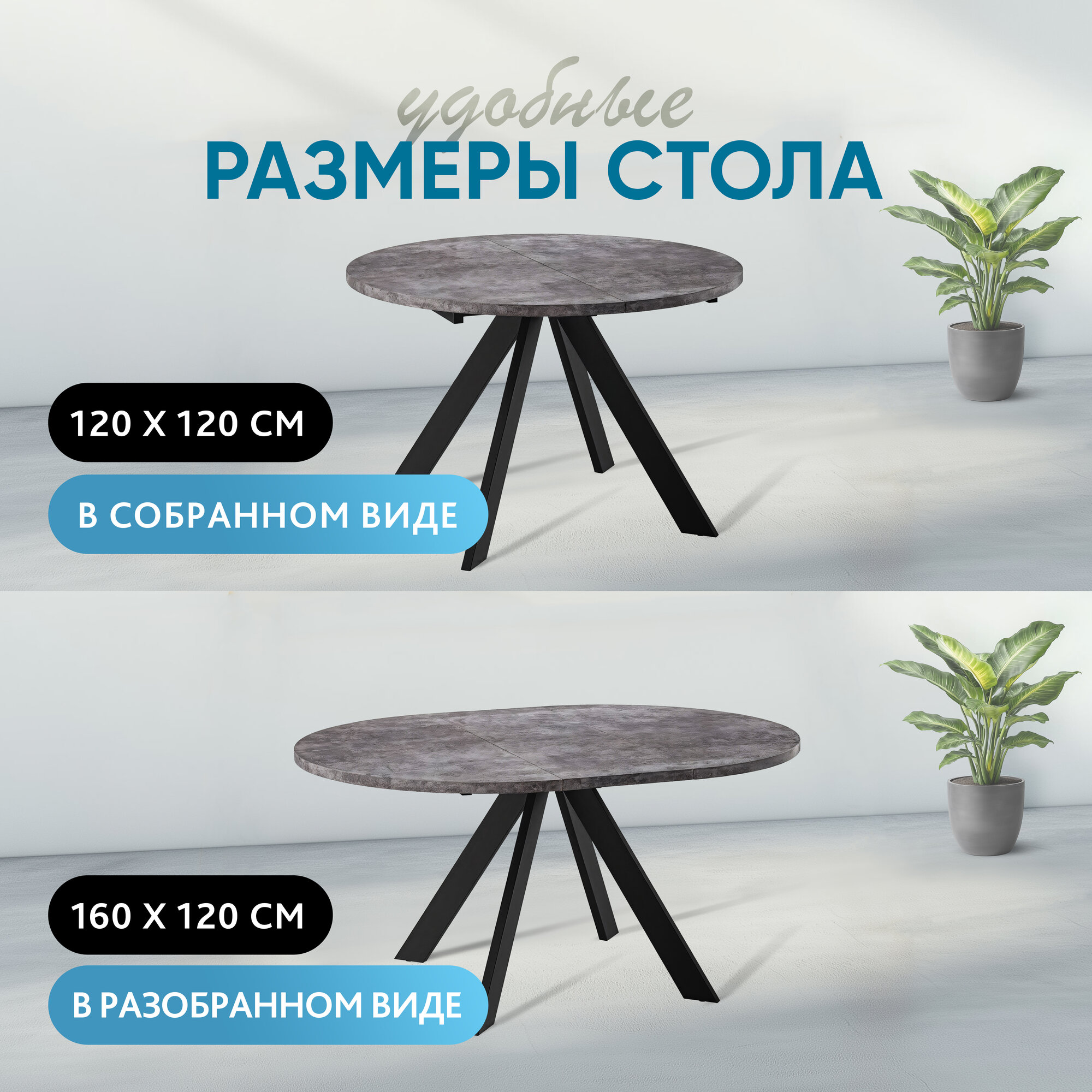 СохранитьСтол RONDO-120, круглый раздвижной 120(160), дымчатая керамика/черный, (1 упак.) интересное: