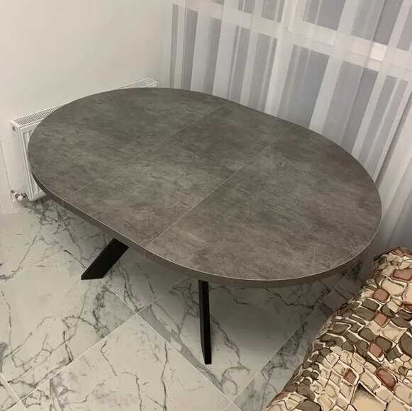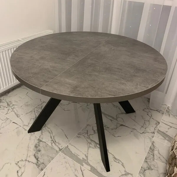 Стол круглый раздвижной "TRIO-100" (дымчатая керамика/черный)