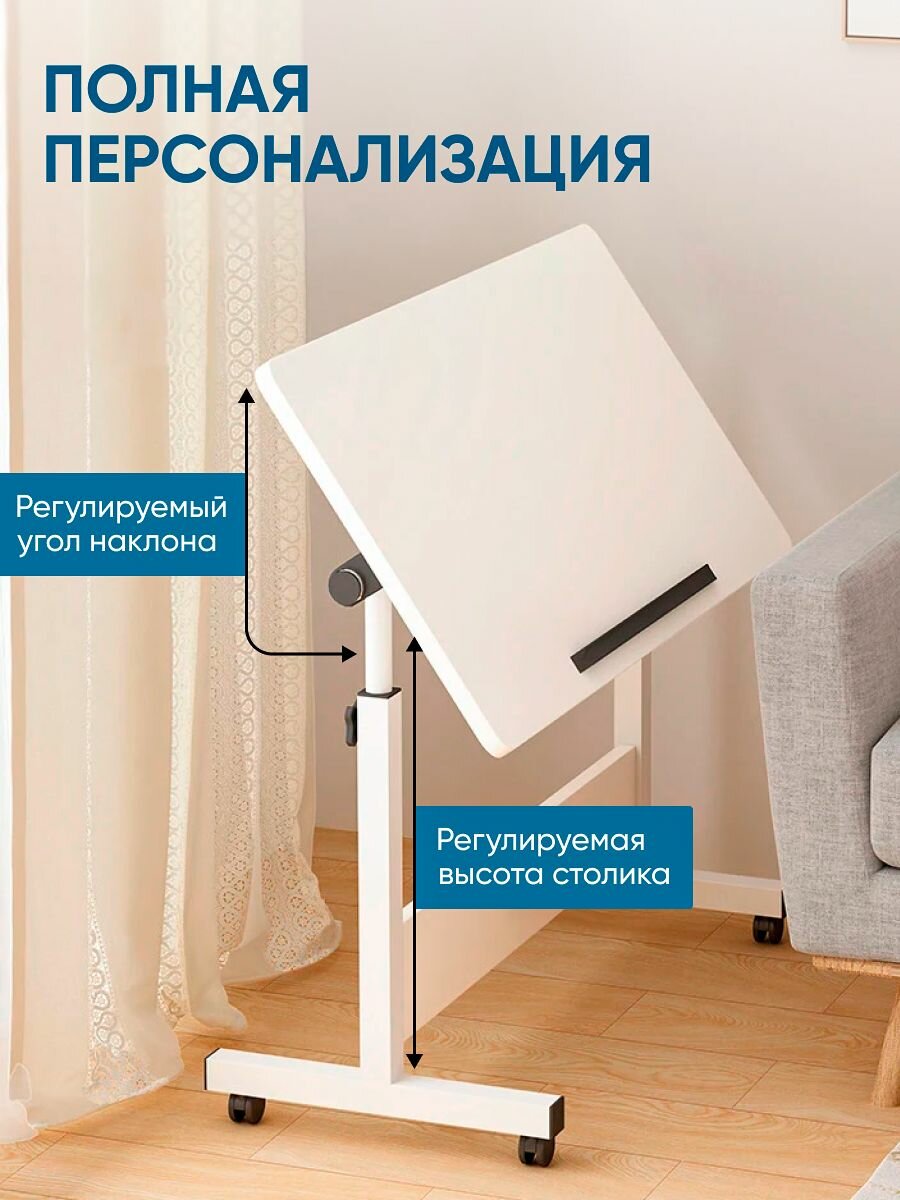 Прикроватный столик OQQI на колесах для ноутбука с регулируемой высотой и наклоном 60 х 40 х 65см