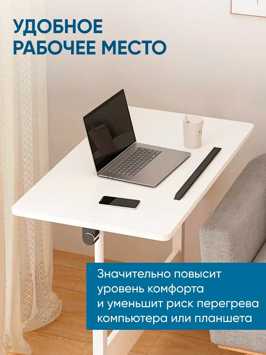 Столик для ноутбука прикроватный OQQI, на колесиках, для ноутбука 17" и менее, 60х40х65 см, белый