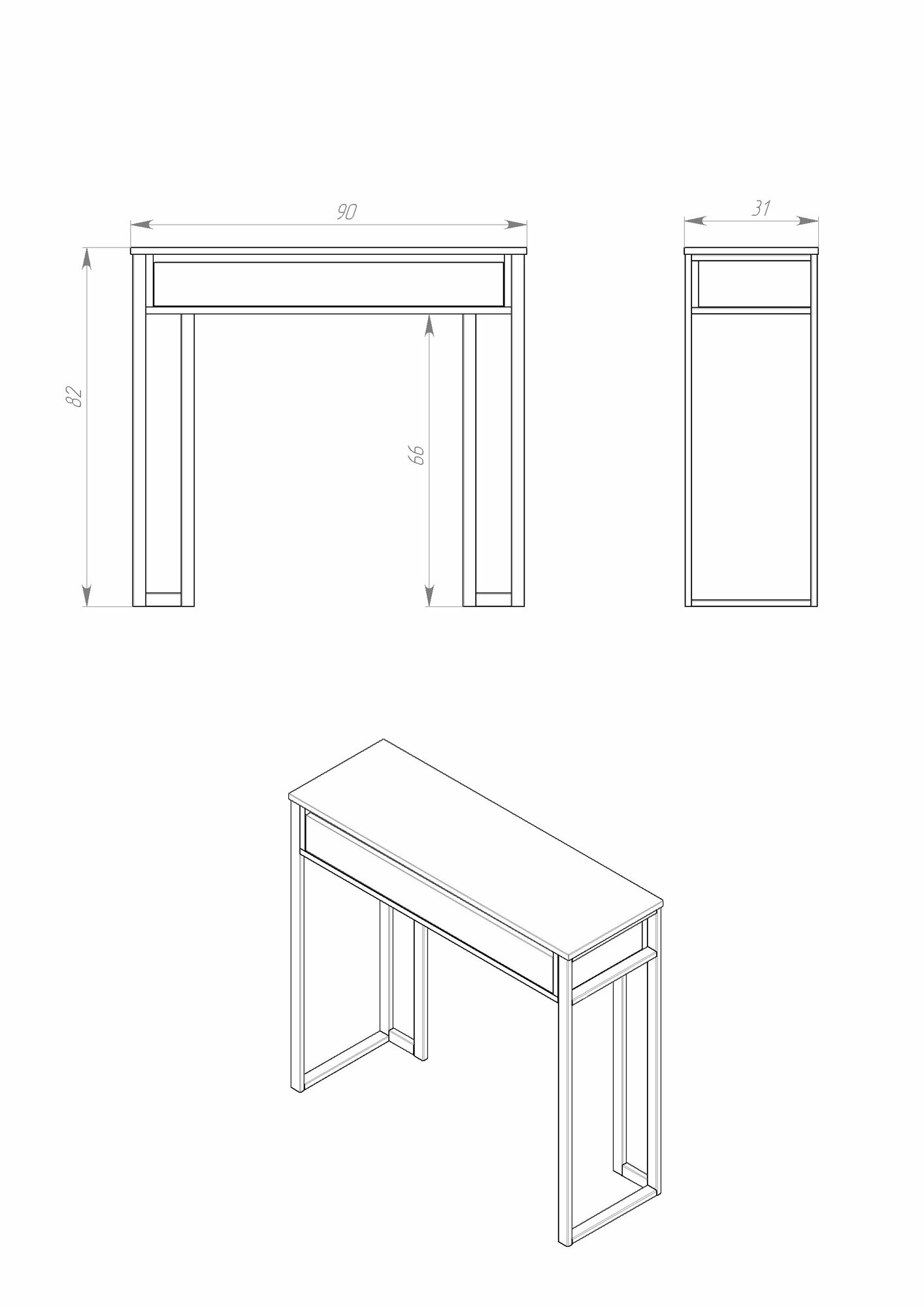 Туалетный столик с ящиком косметический консоль белый/вотан