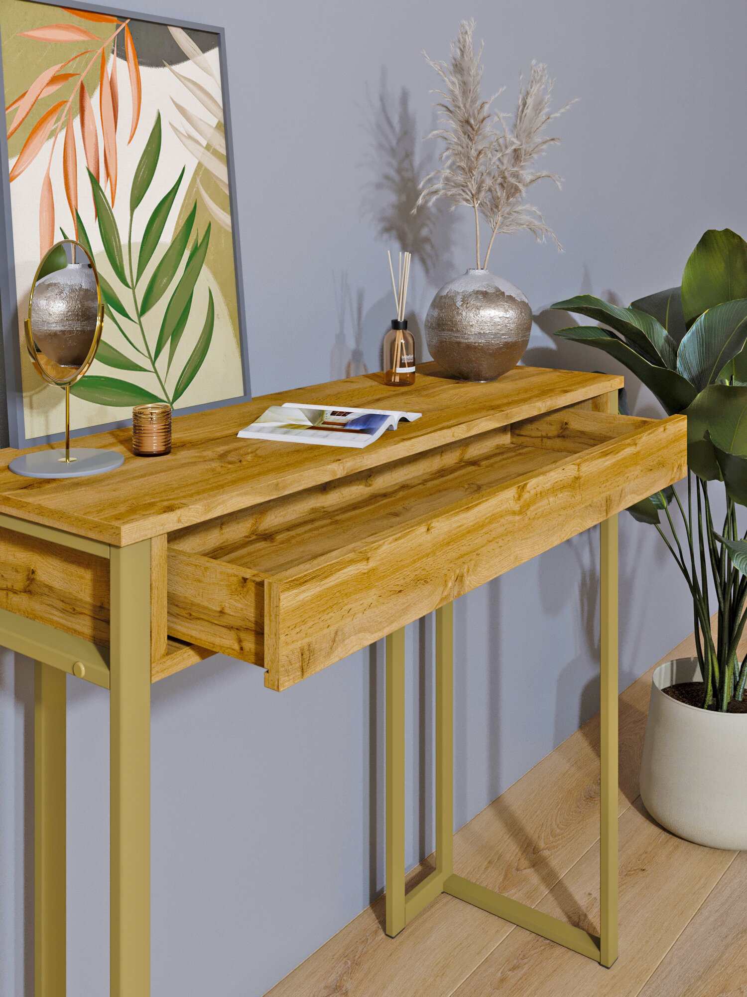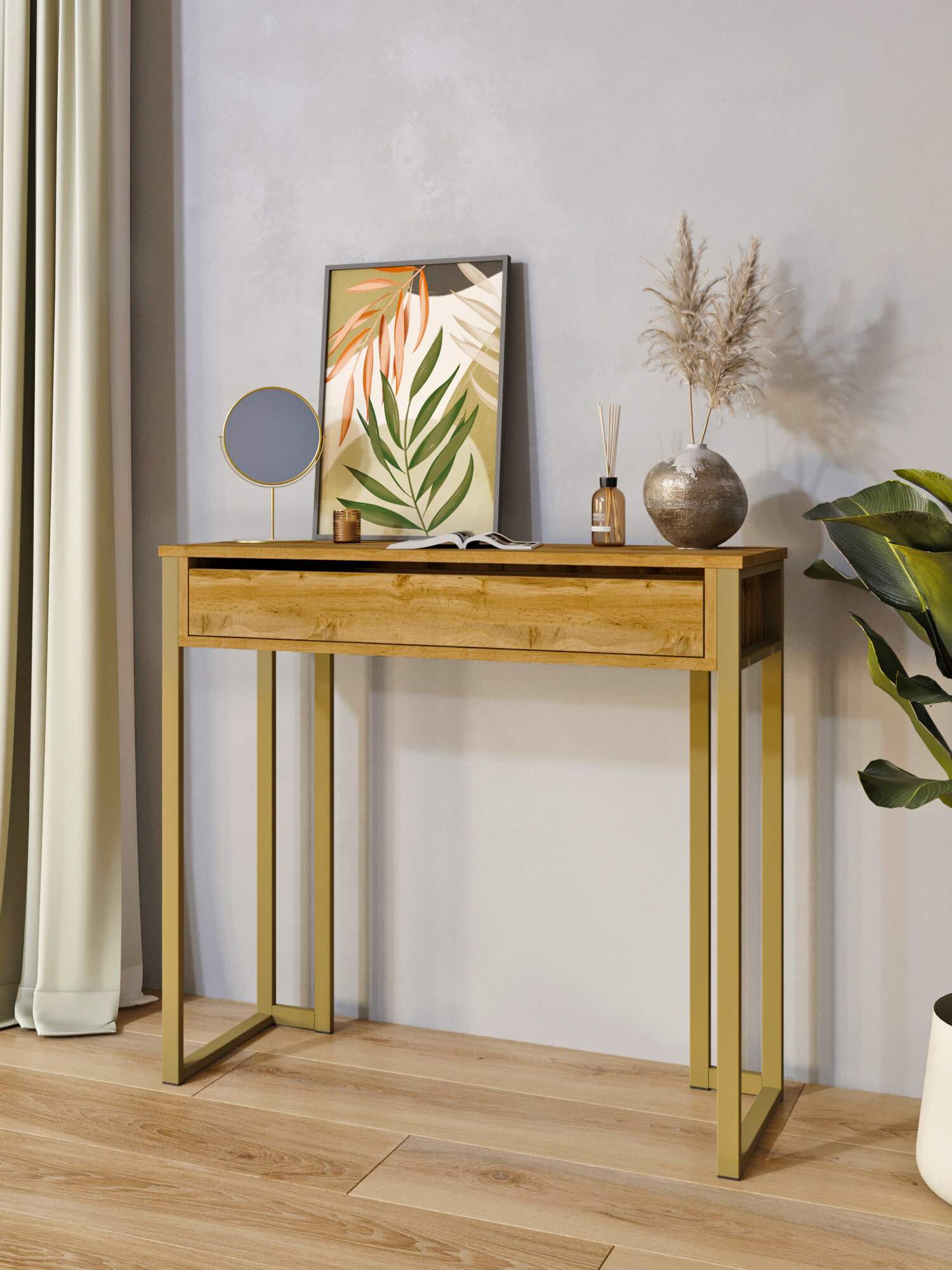 Туалетный столик с ящиком косметический консоль золотой/сонома