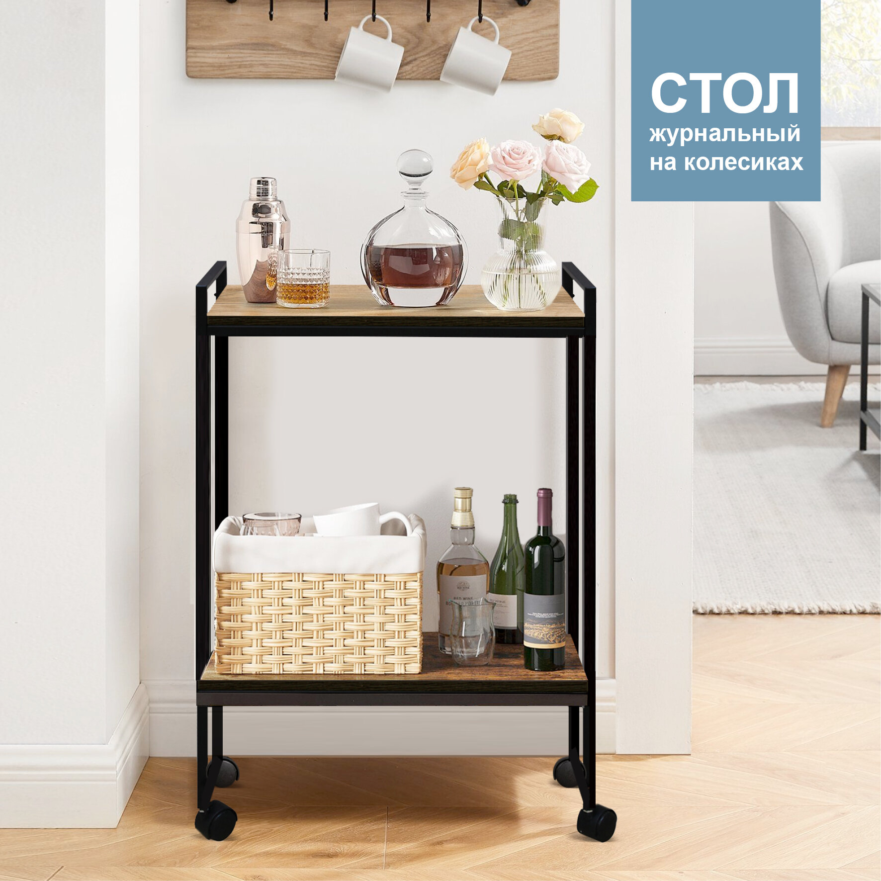 Столик сервировочный на колесах с полкой цвет дуб делано интересное: