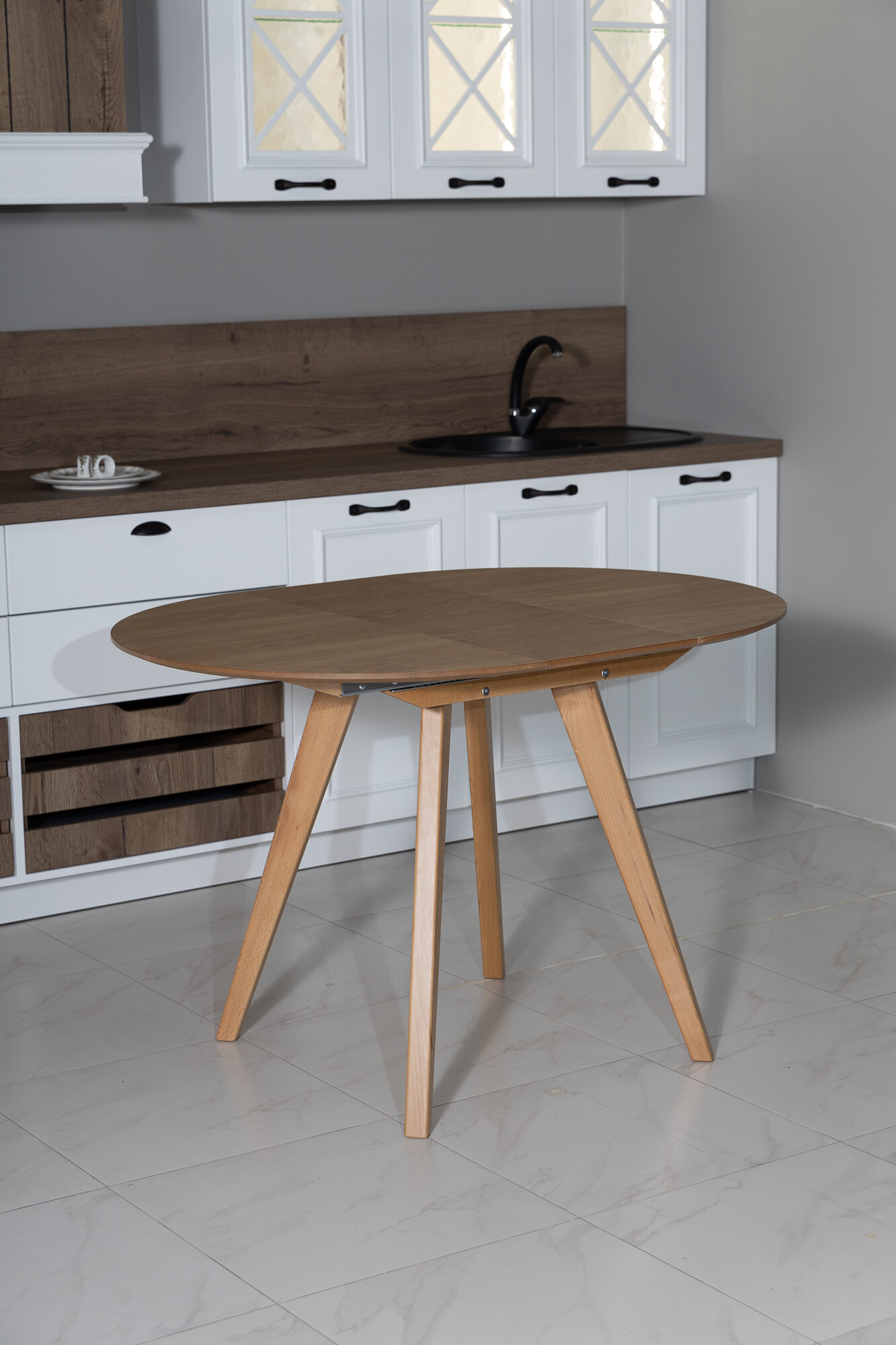 Купить Стол кухонный круглый Клер, раздвижной деревянный стол из массива бука
