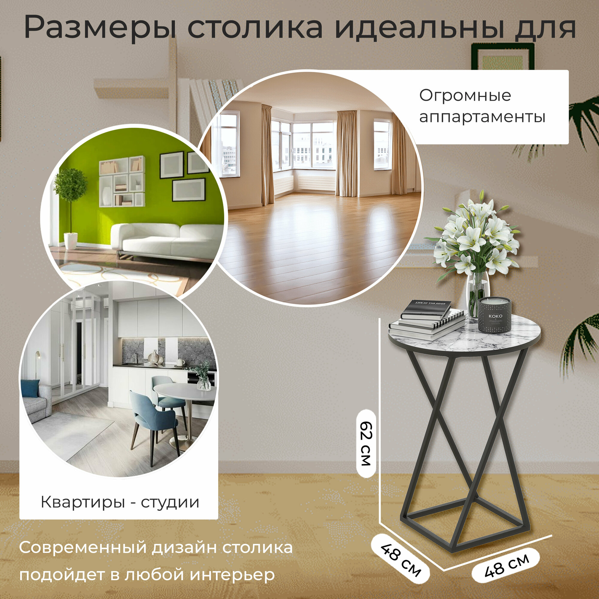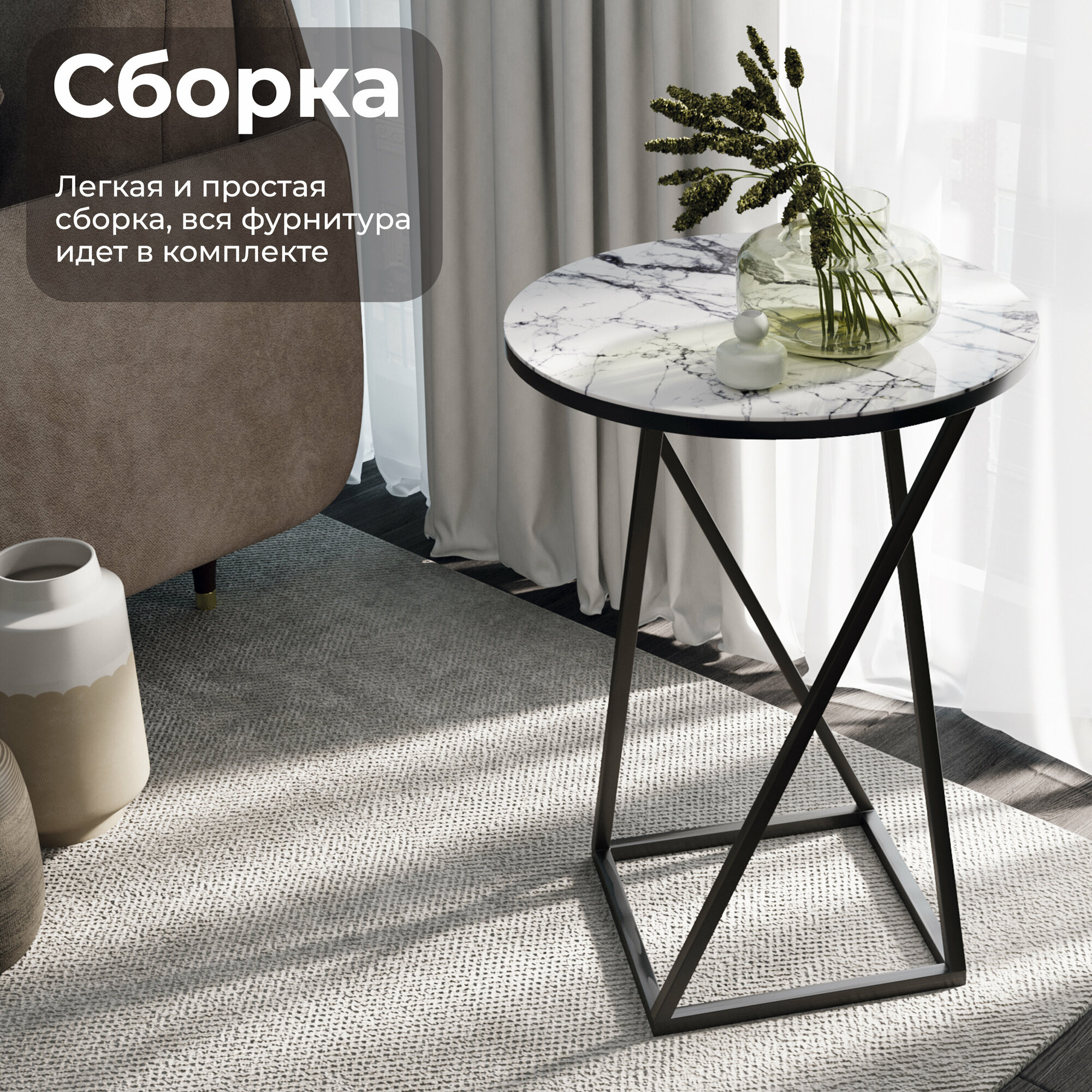 Столик журнальный круглый со стеклянной поверхностью белый черный, ДП 1-03-05 интересное:
