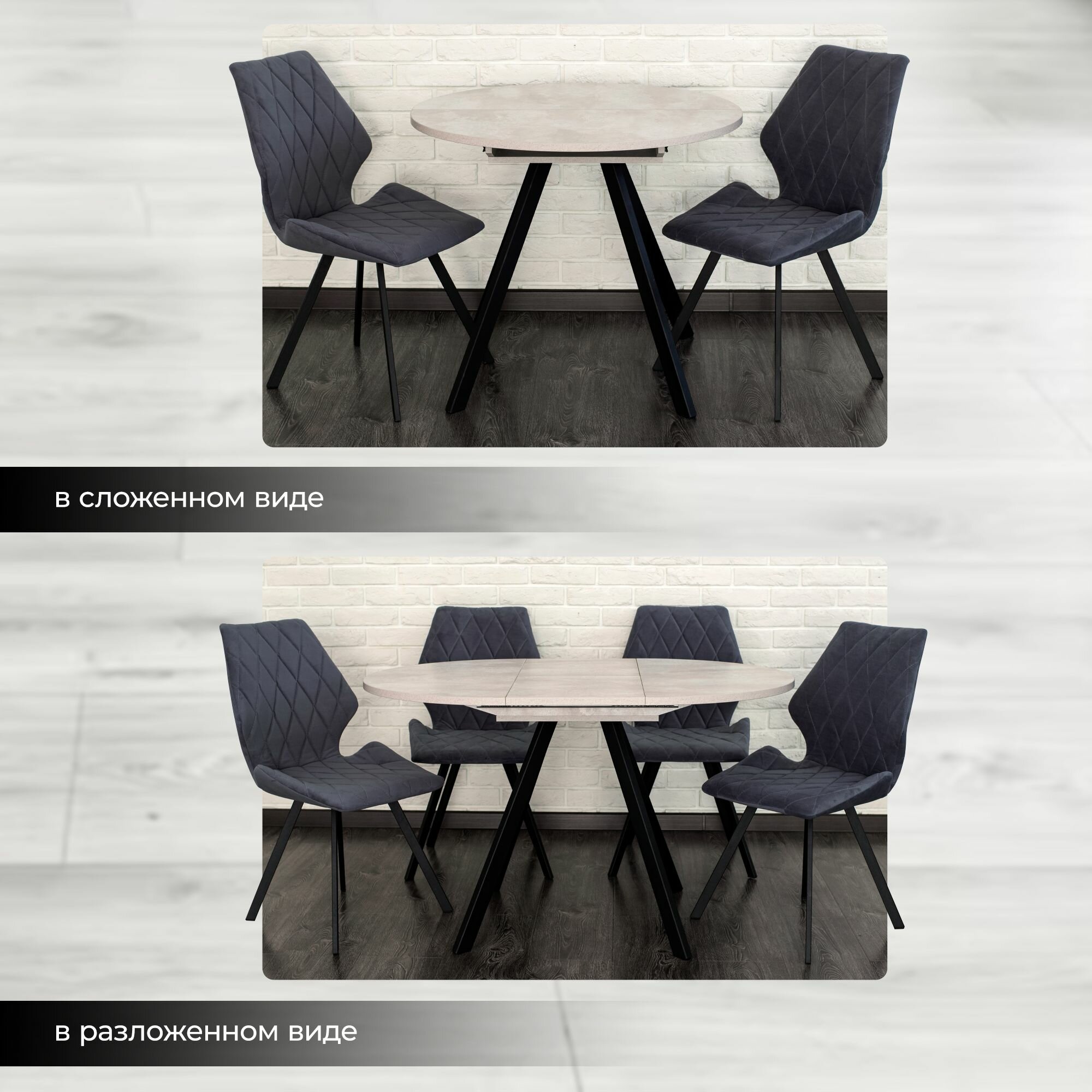 Стол обеденный Нарди, кухонный, раскладной, 900/1260х900х750, Цемент светлый интересное: