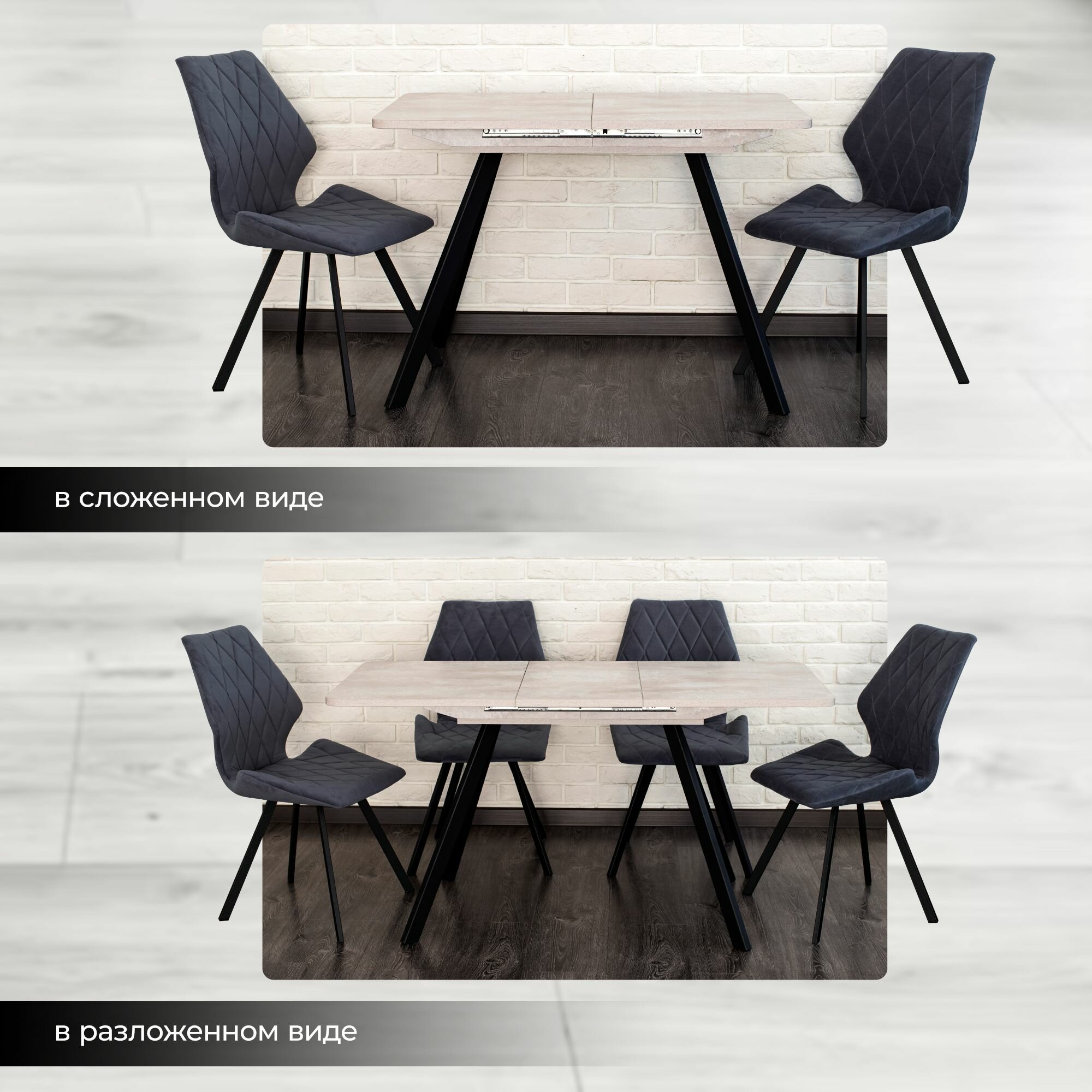 Стол обеденный НардиII, кухонный, раскладной, 1100/1460х680х750, Цемент темный