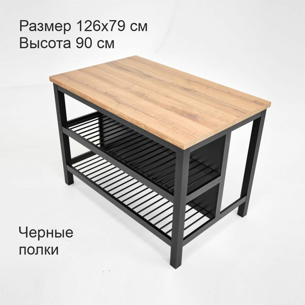 Кухонный остров, барный стол 126х79 см, Террасный кот, алюминий, черный, полки черные интересное: