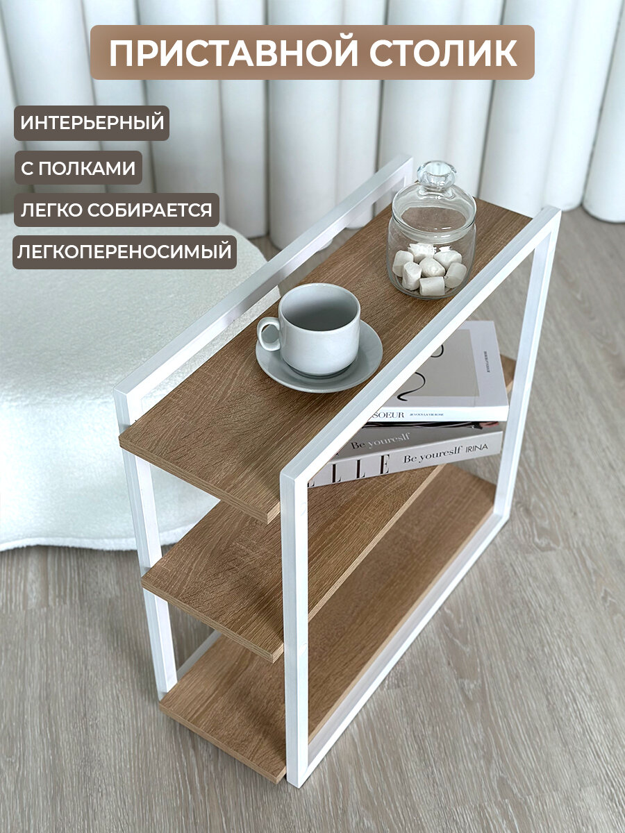 СохранитьСтол приставной MEBEL.VSTILE придиванный, прикроватный в стиле лофт сонома белый интересное: