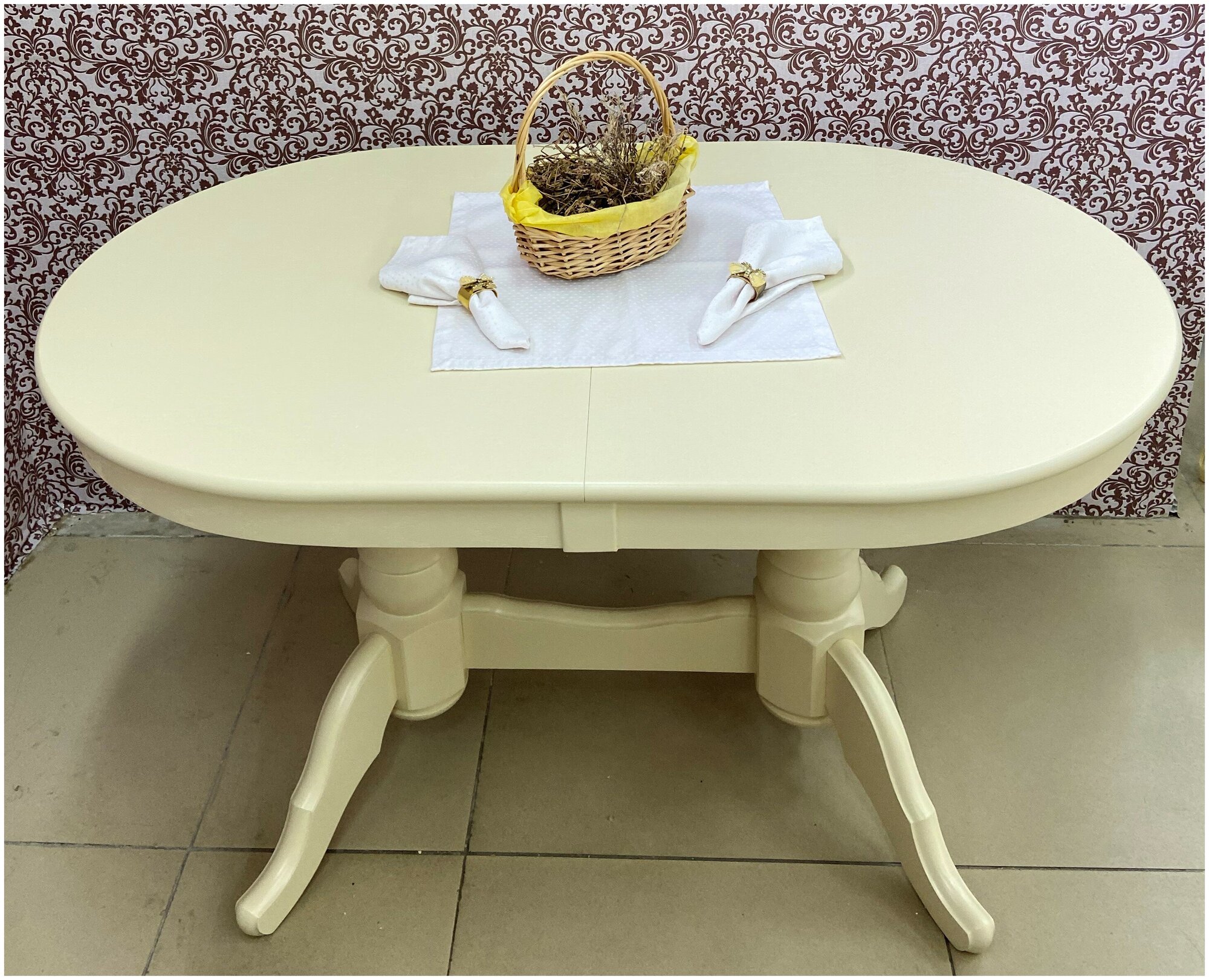 Стол обеденный раздвижной Презент, овальный (массив березы, мдф, шпон), 130х80х78см, слон.кость