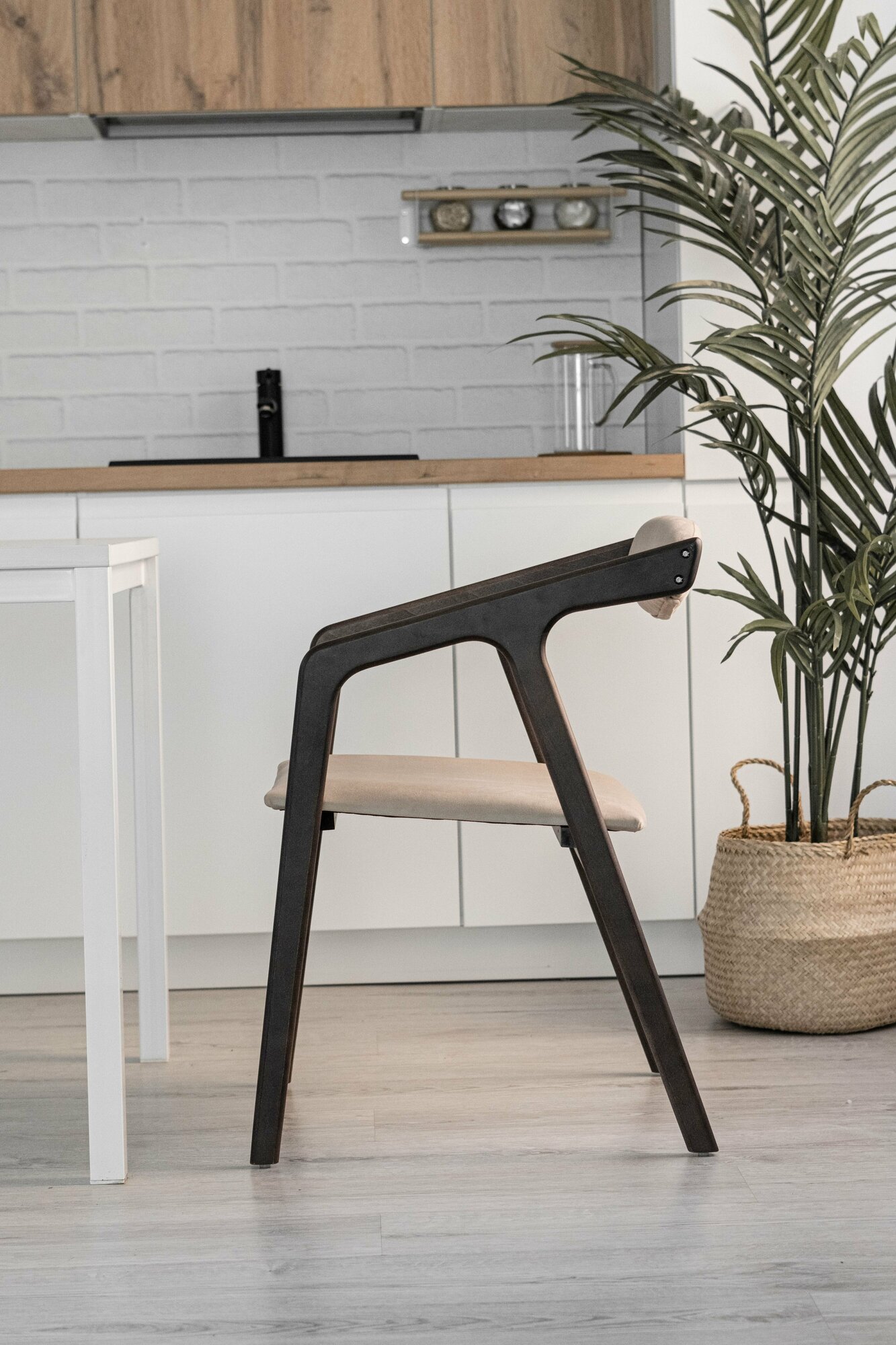 Деревянный стул для кухни, гостиной, письменного стола FLORENCIA обивка - коричневый велюр, каркас - венге