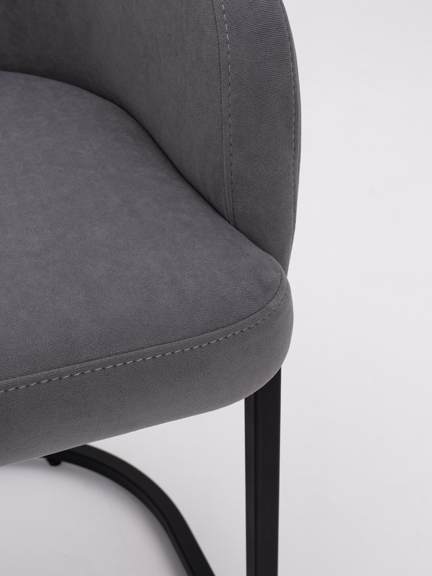 Стул TOMGROUP Amely Gray/Black, ГОСТ, черный каркас, серый велюр — для офиса, дома, кафе, подлокотники