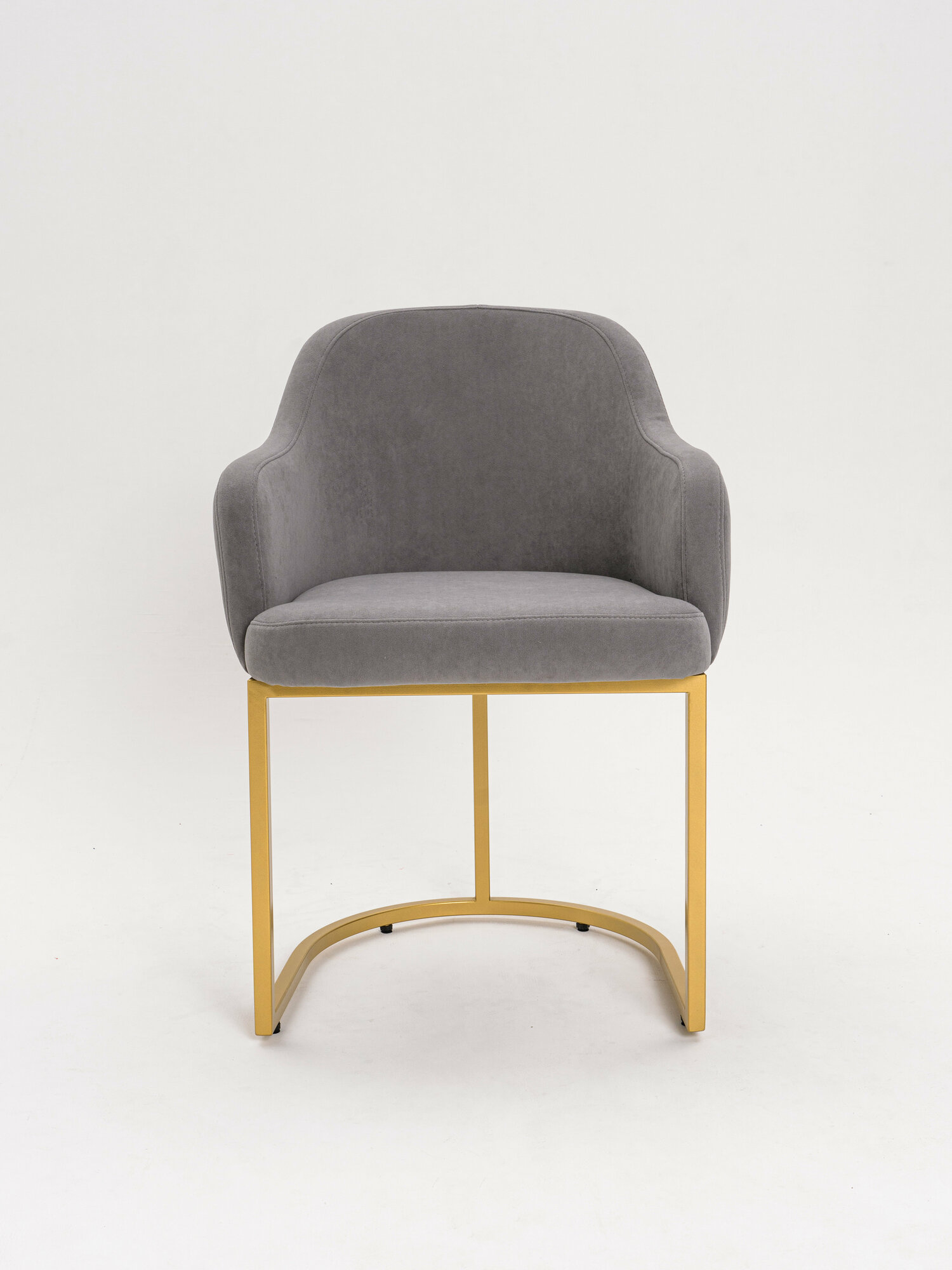 Стул TOMGROUP Amely Gray/Gold, подлокотники, ГОСТ, золотой каркас, серый велюр — дом, офис