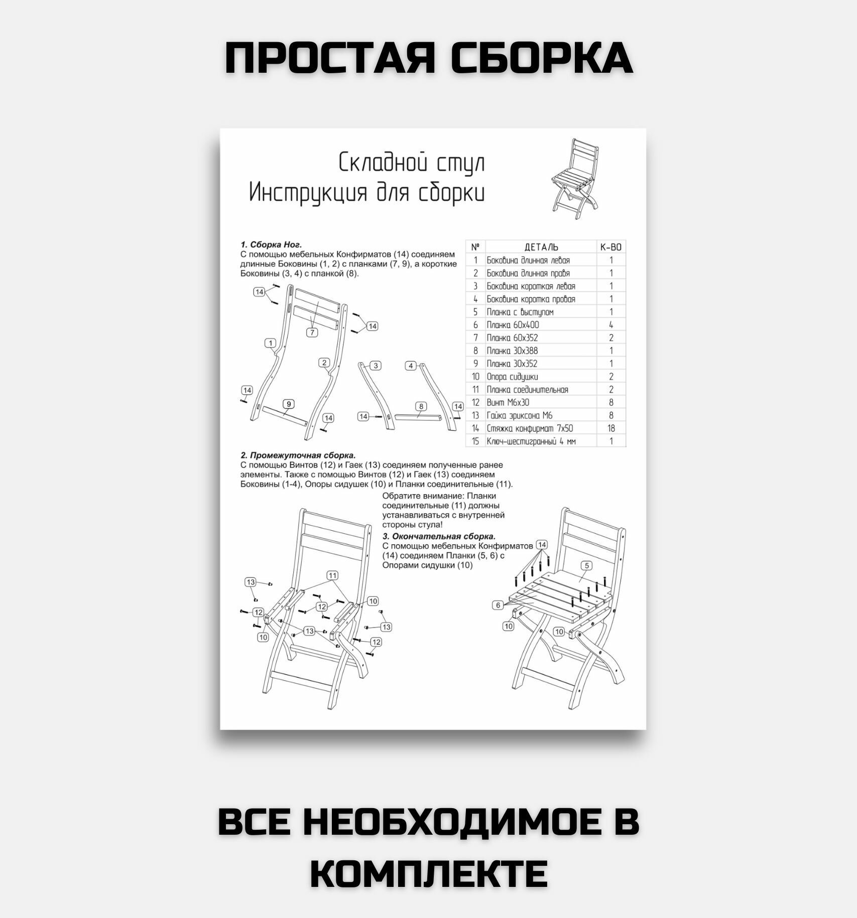 Стул складной деревянный для дома и дачи "Лари", натуральный без шлифовки