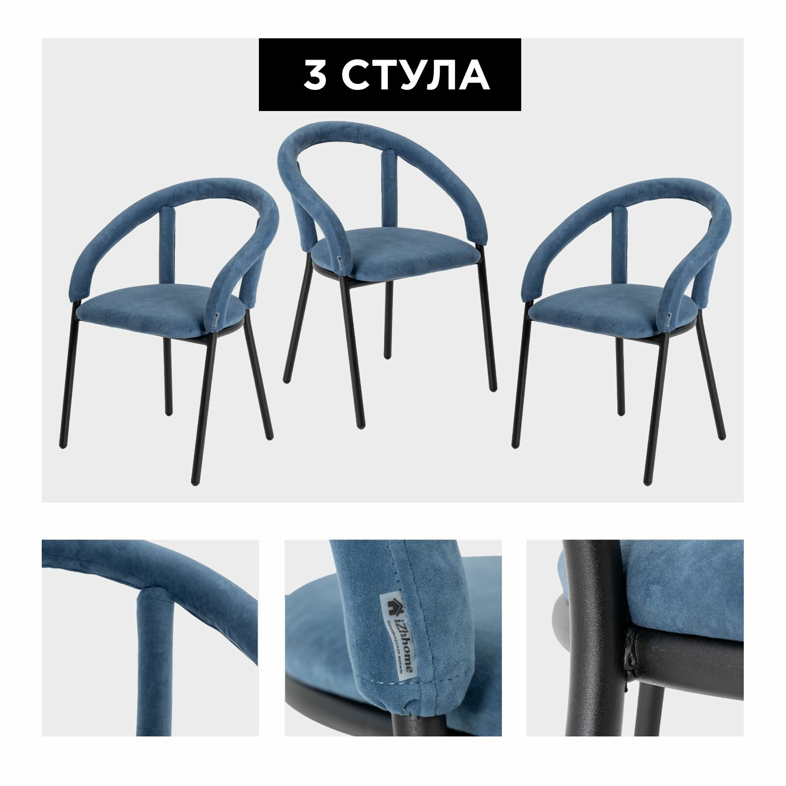 Купить Комплект 3 стула Модерн на цельносварном металлокаркасе для кухни, гостинной, офиса, синего цвета