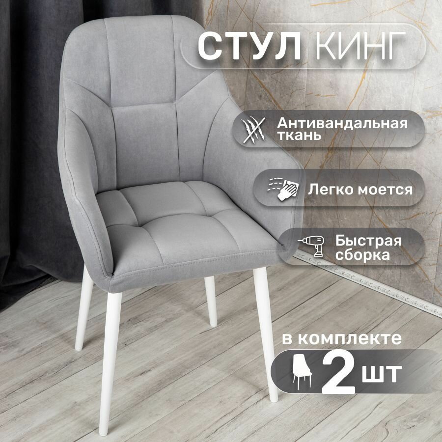 Купить Стулья для кухни со спинкой 2 шт «Кинг», У Стулыча, антивандальный велюр, металлокаркас, серый, белые ножки