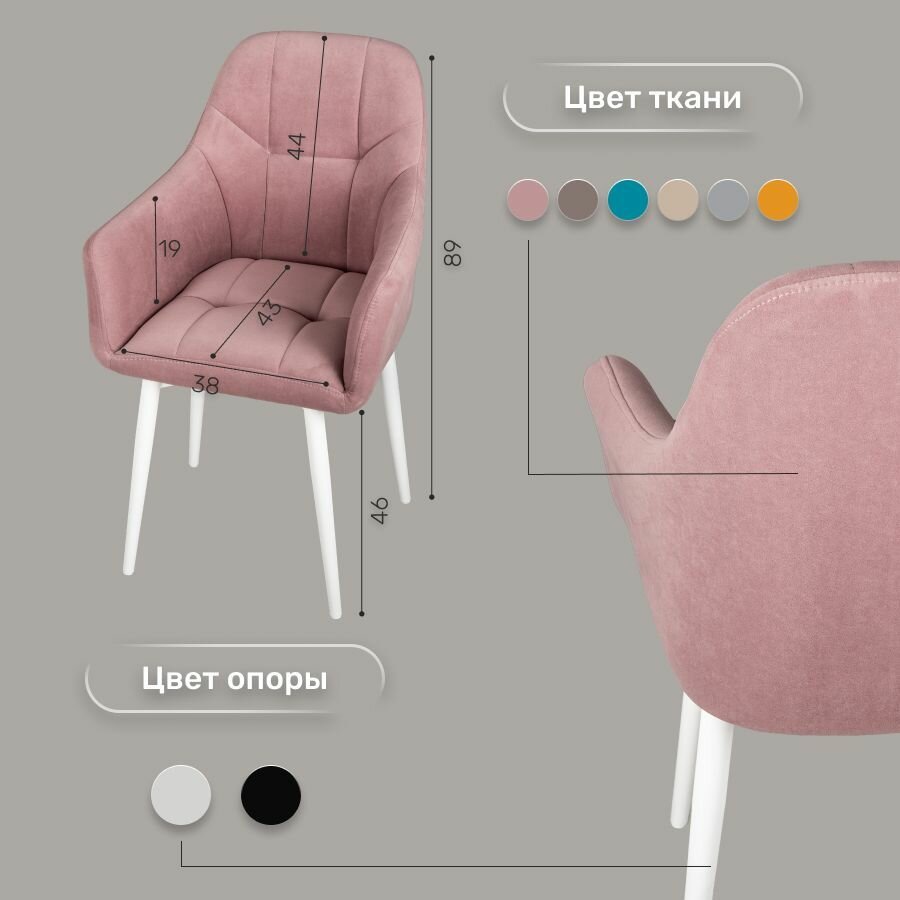 СохранитьСтулья для кухни со спинкой 2 шт «Кинг», У Стулыча, антивандальный велюр, металлокаркас, розовый, белые ножки интересное:
