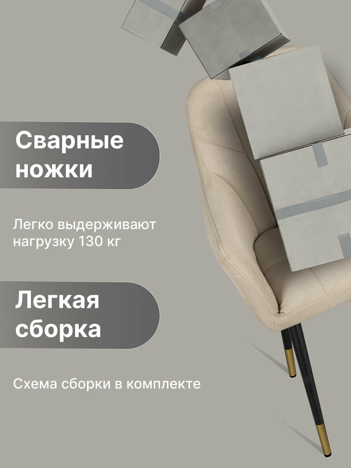 Купить Стулья для кухни со спинкой 2 шт «Кинг», У Стулыча, антивандальный велюр, металлокаркас, бежевый, черно-золотистые ножки