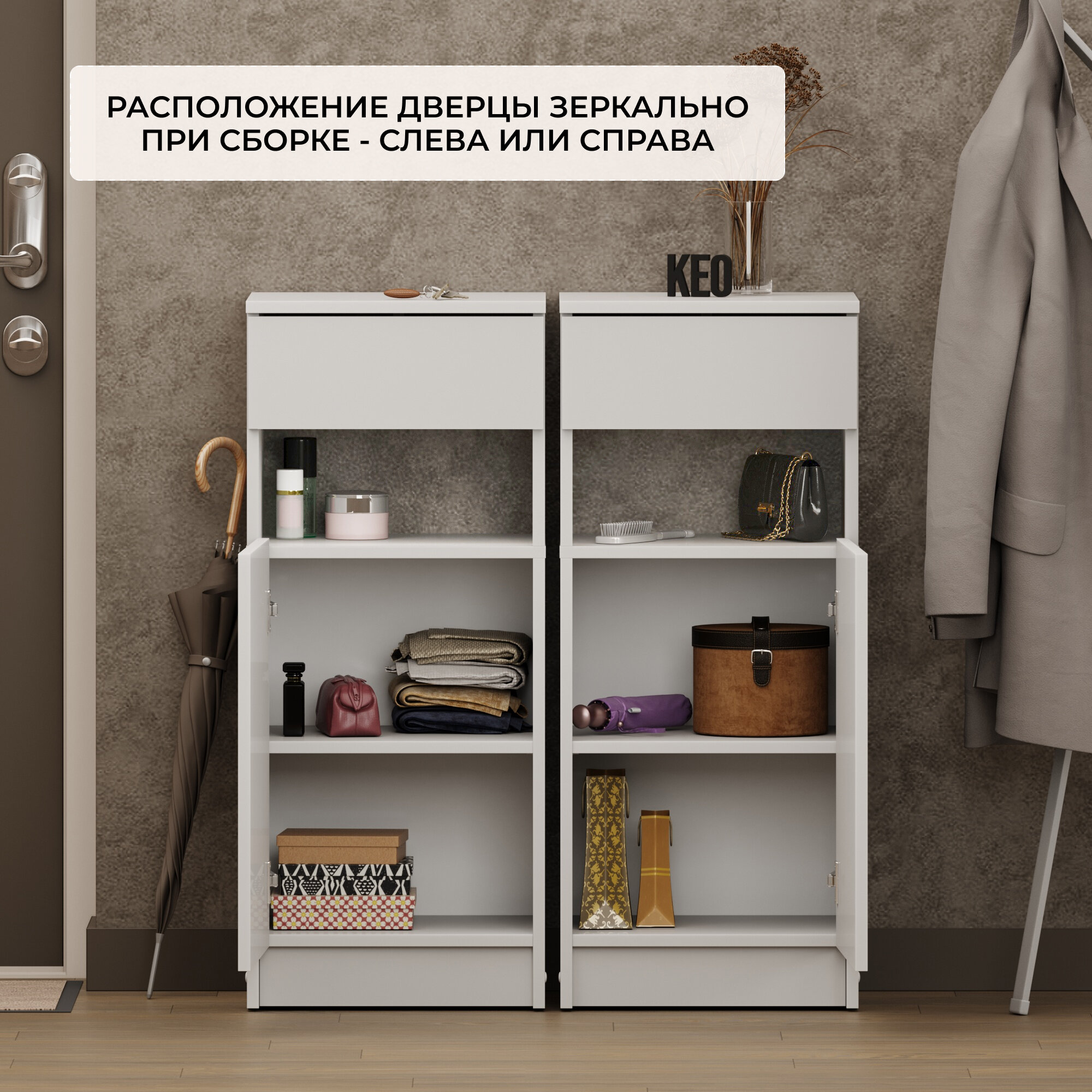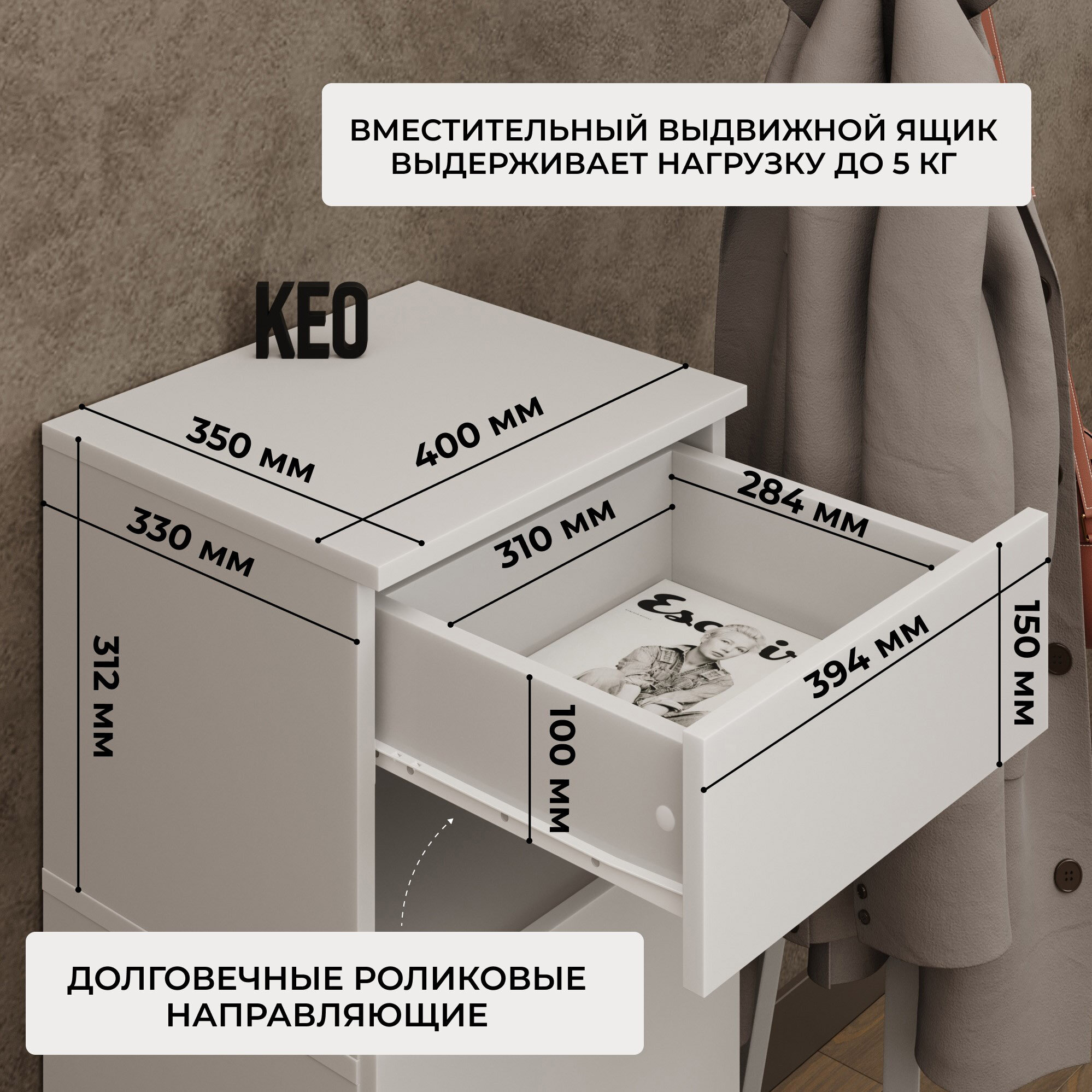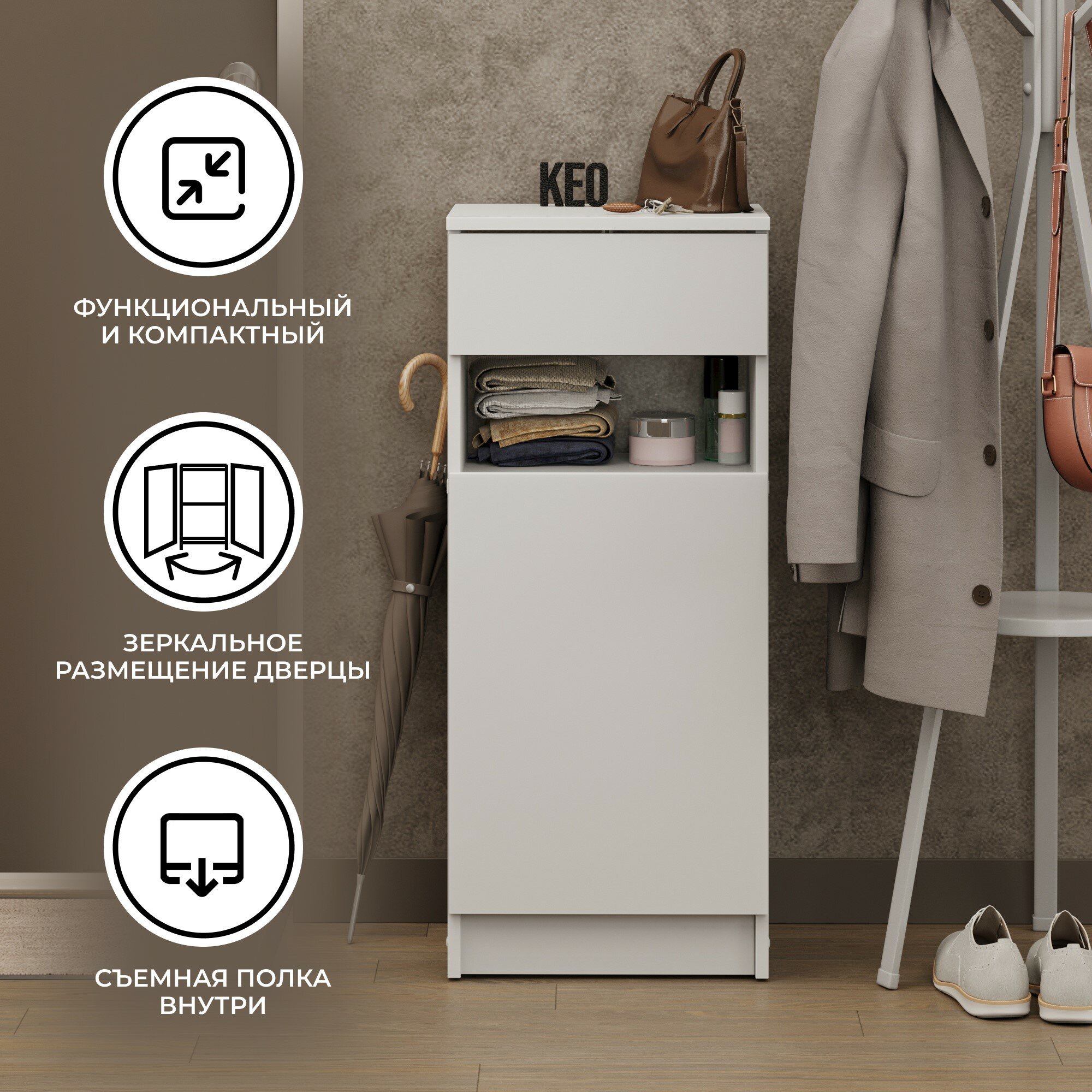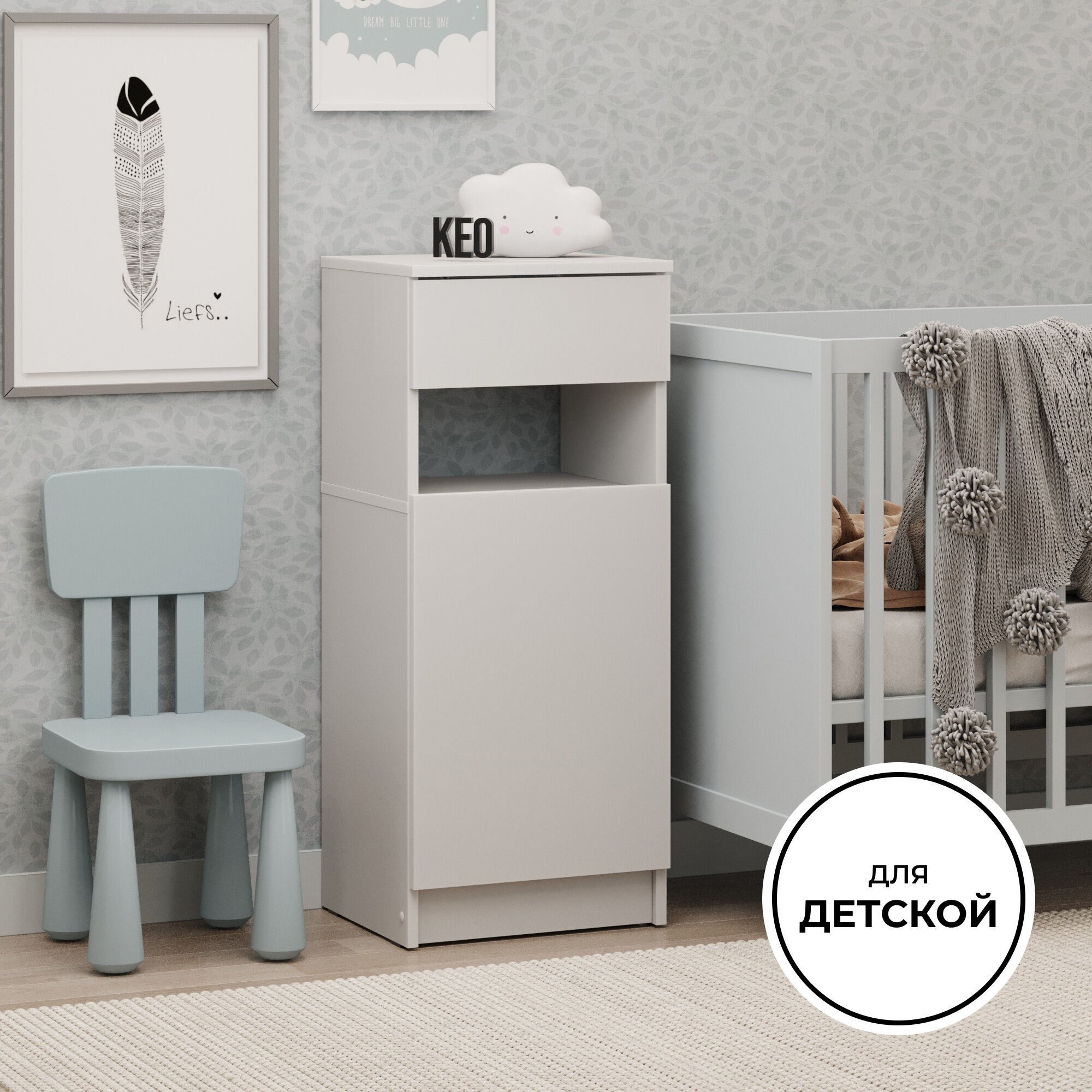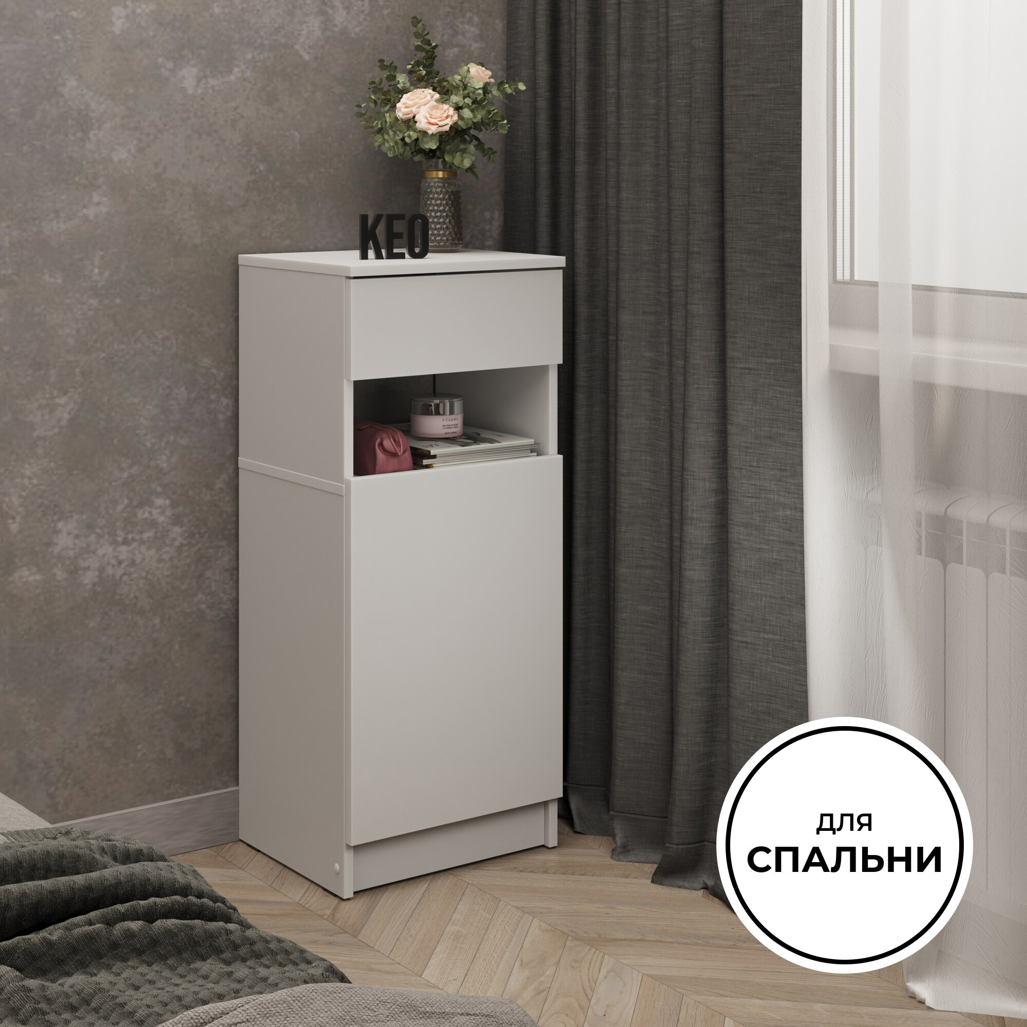 Комод Кео КМ100 с выдвижным ящиком, белый, Комод Кео КМ100 с выдвижным ящиком, белый, 95х60х35,5