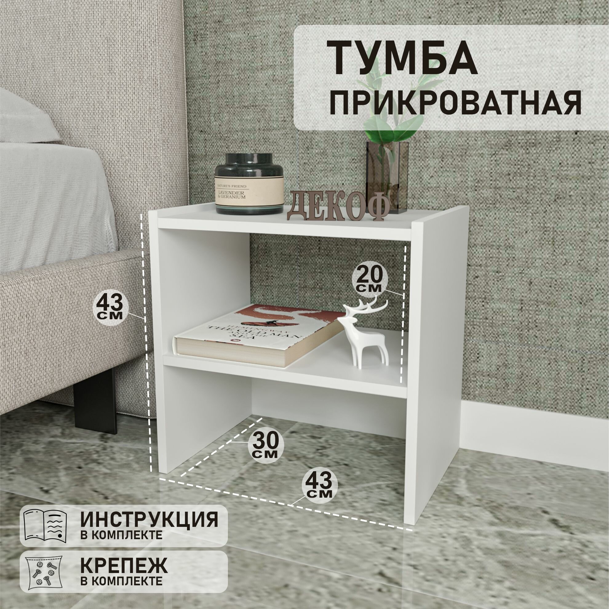 Тумба прикроватная, белая, напольная с открытой полкой в спальню или детскую комнату, 43х30х43 см интересное: