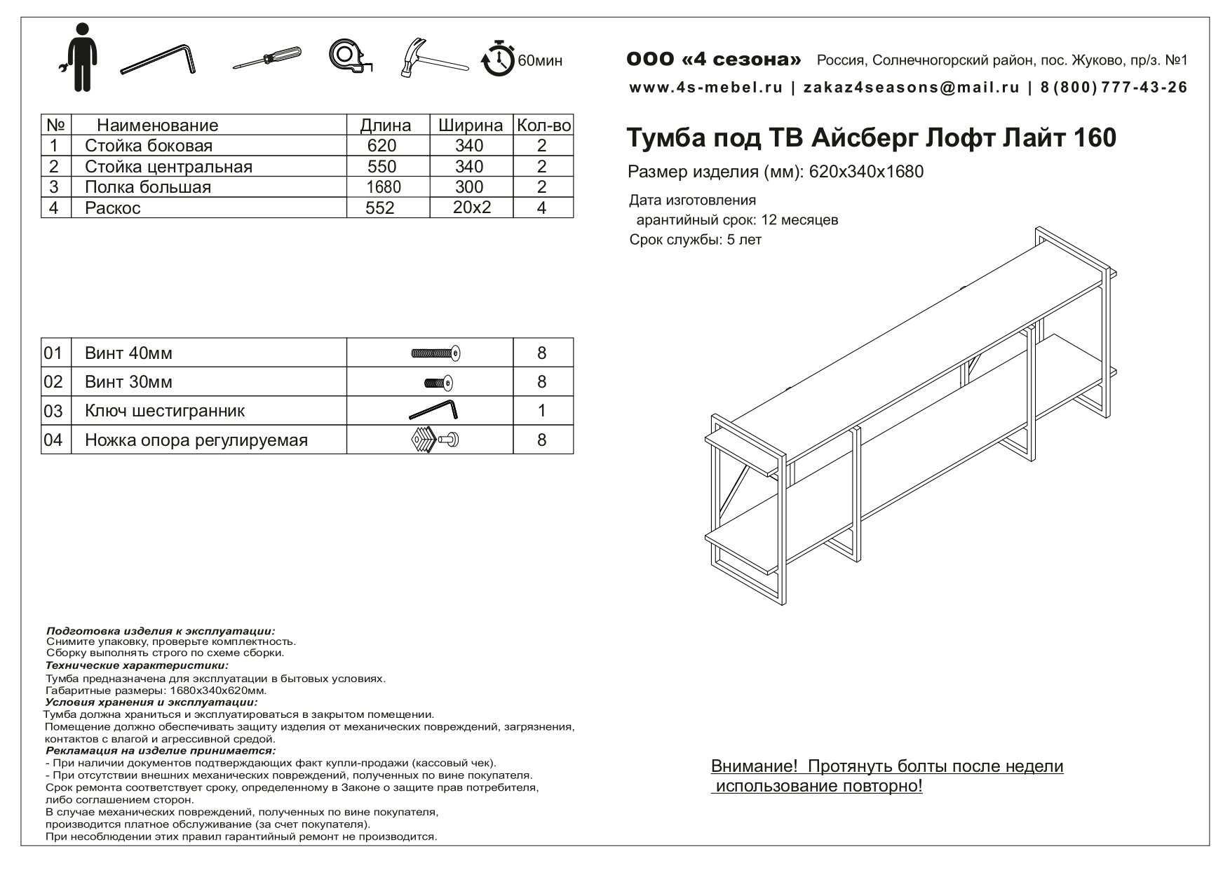 Тумба под ТВ Айсберг Лофт Лайт 160 белый/северное дерево темное интересное:
