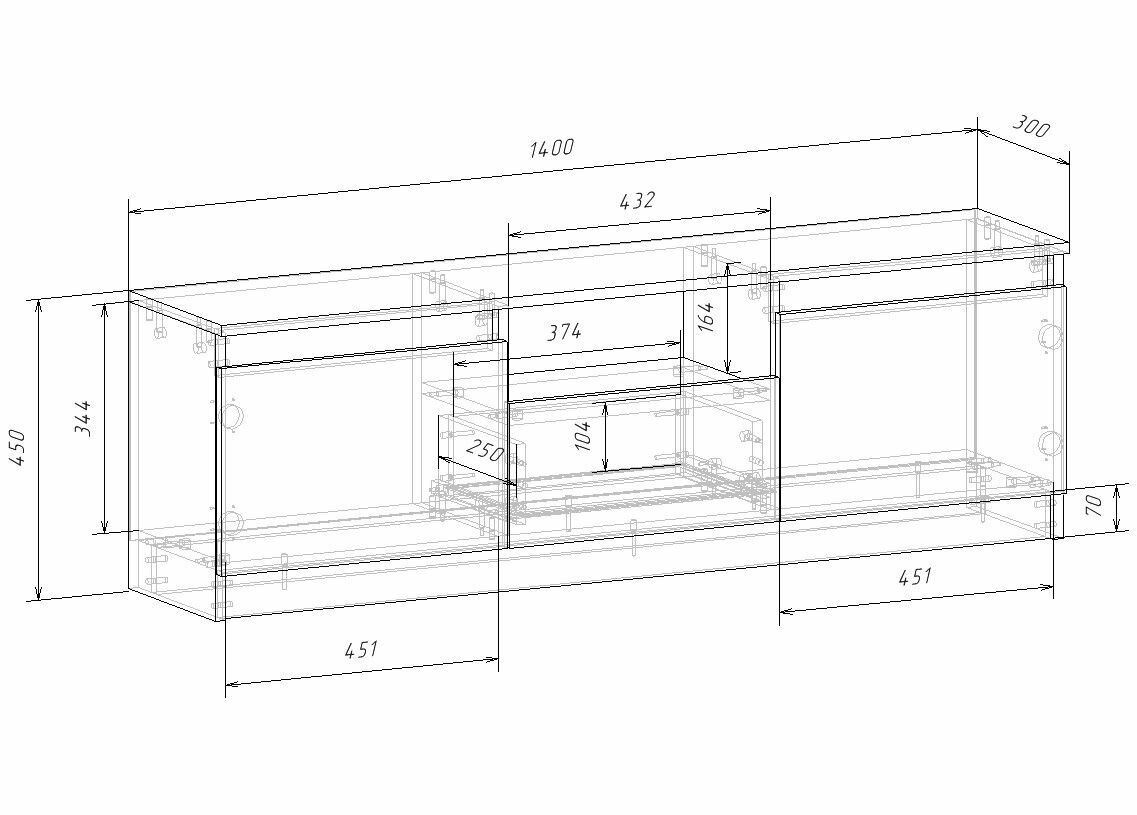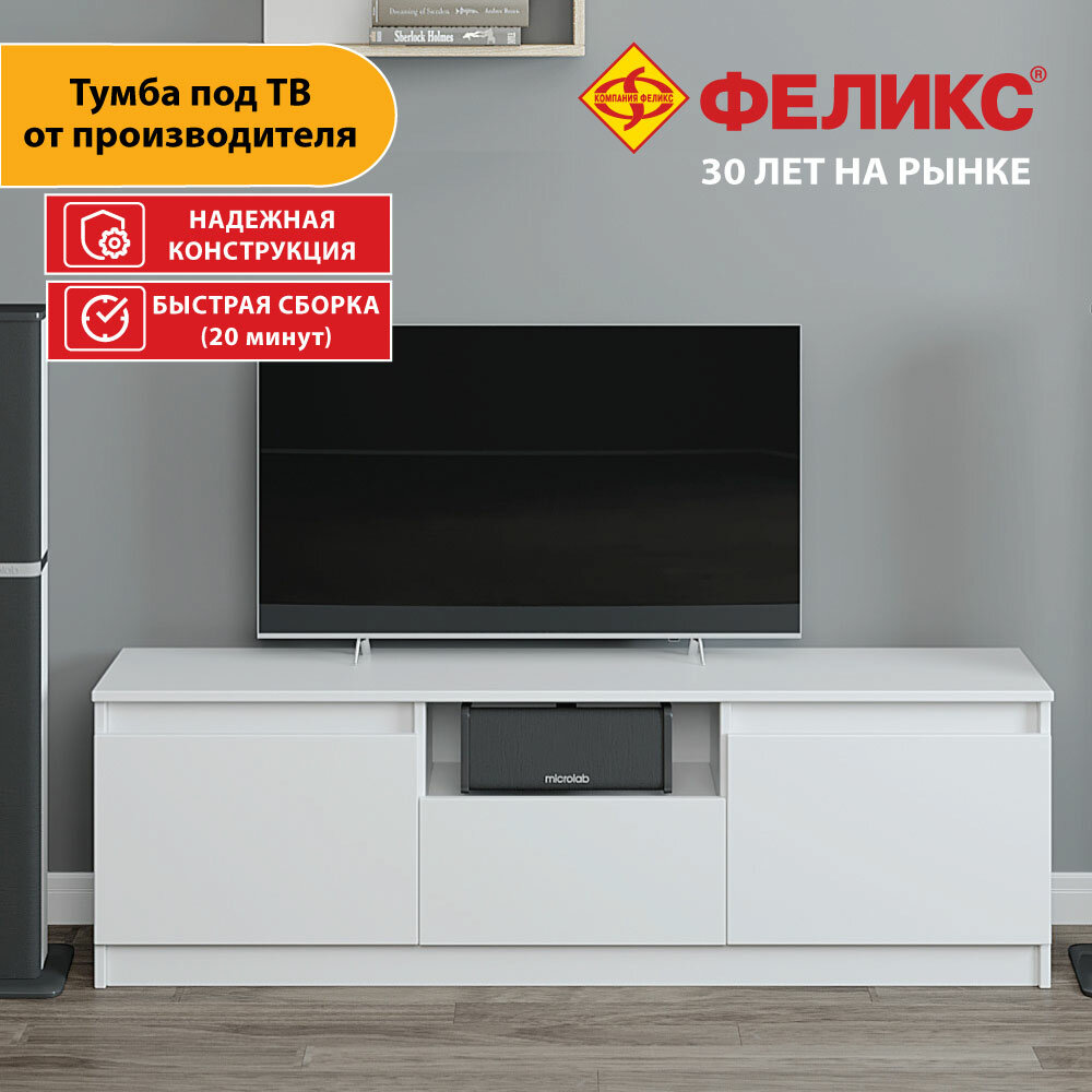 Тумба под ТВ белая напольная для большого телевизора в Лофт для гостиной или спальни, 140x30x45 см, Феликс интересное: