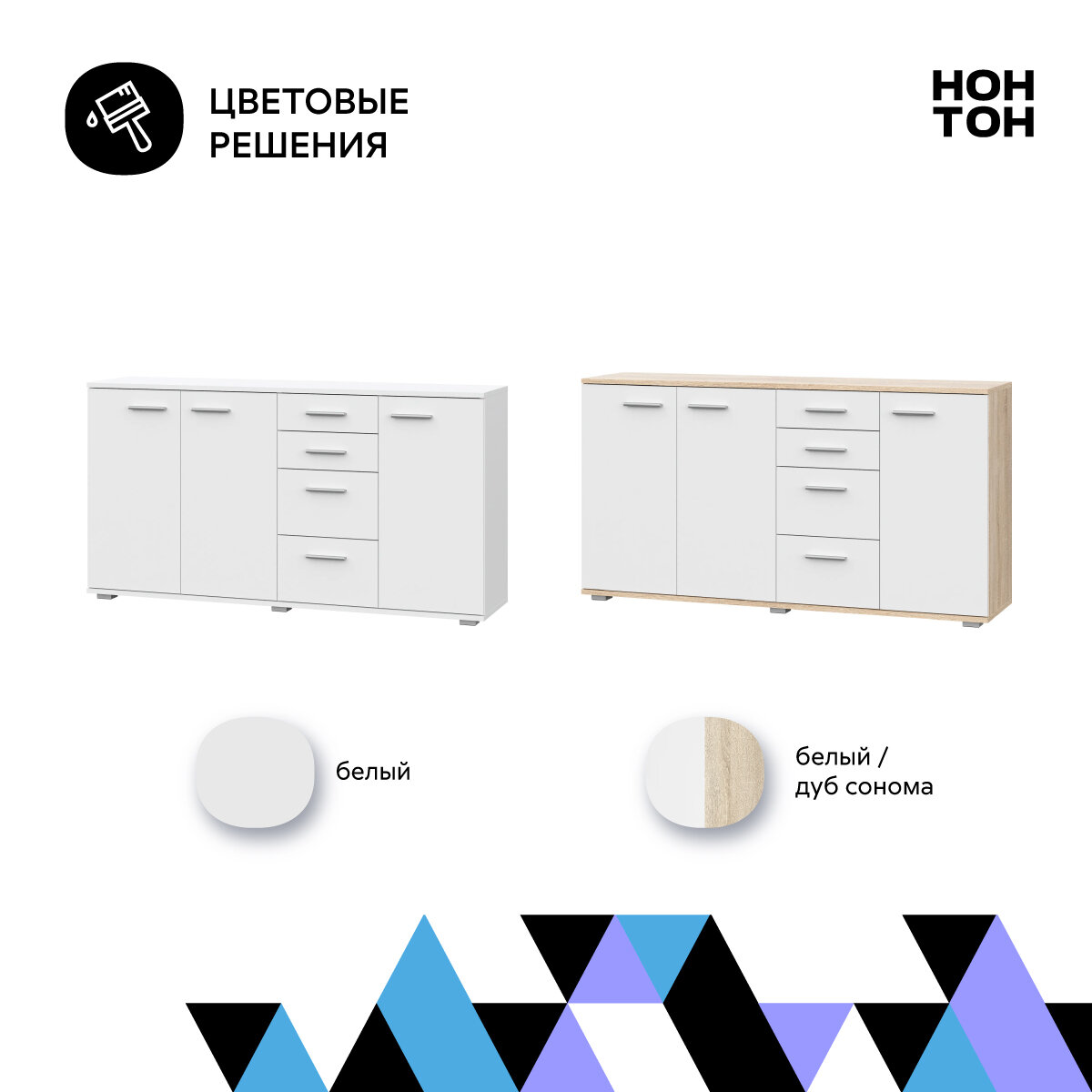 Комод НК-мебель FUN КД-4, 4 ящика, 3 дверцы, ЛДСП, 137,8 х74 х 34 см, Белый 71336953