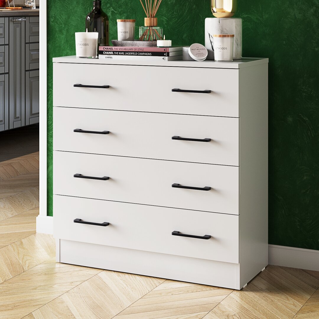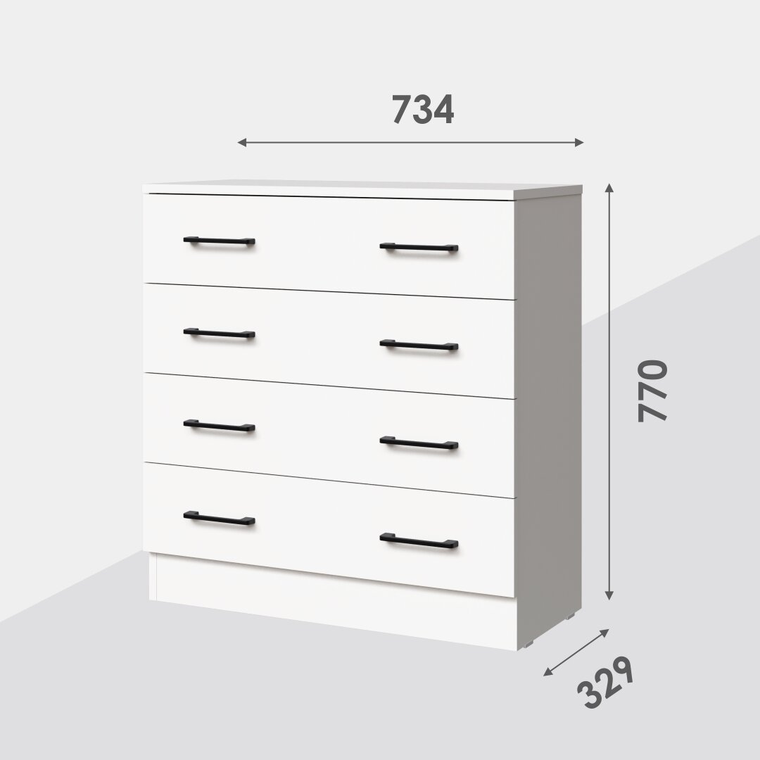 Купить Комод белый с четырьмя ящиками и ручками, 77х73,4х32,9 см