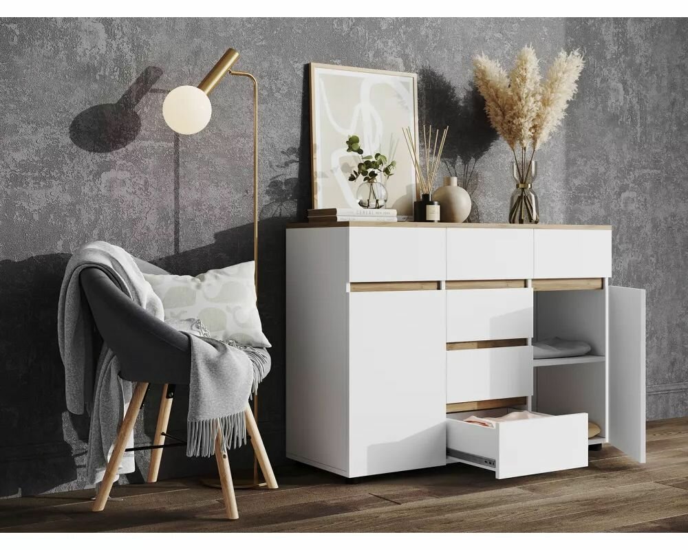 Комод c двумя дверцами и шестью ящиками "Rialto" (1201х866х422) Белый/Дуб вотан