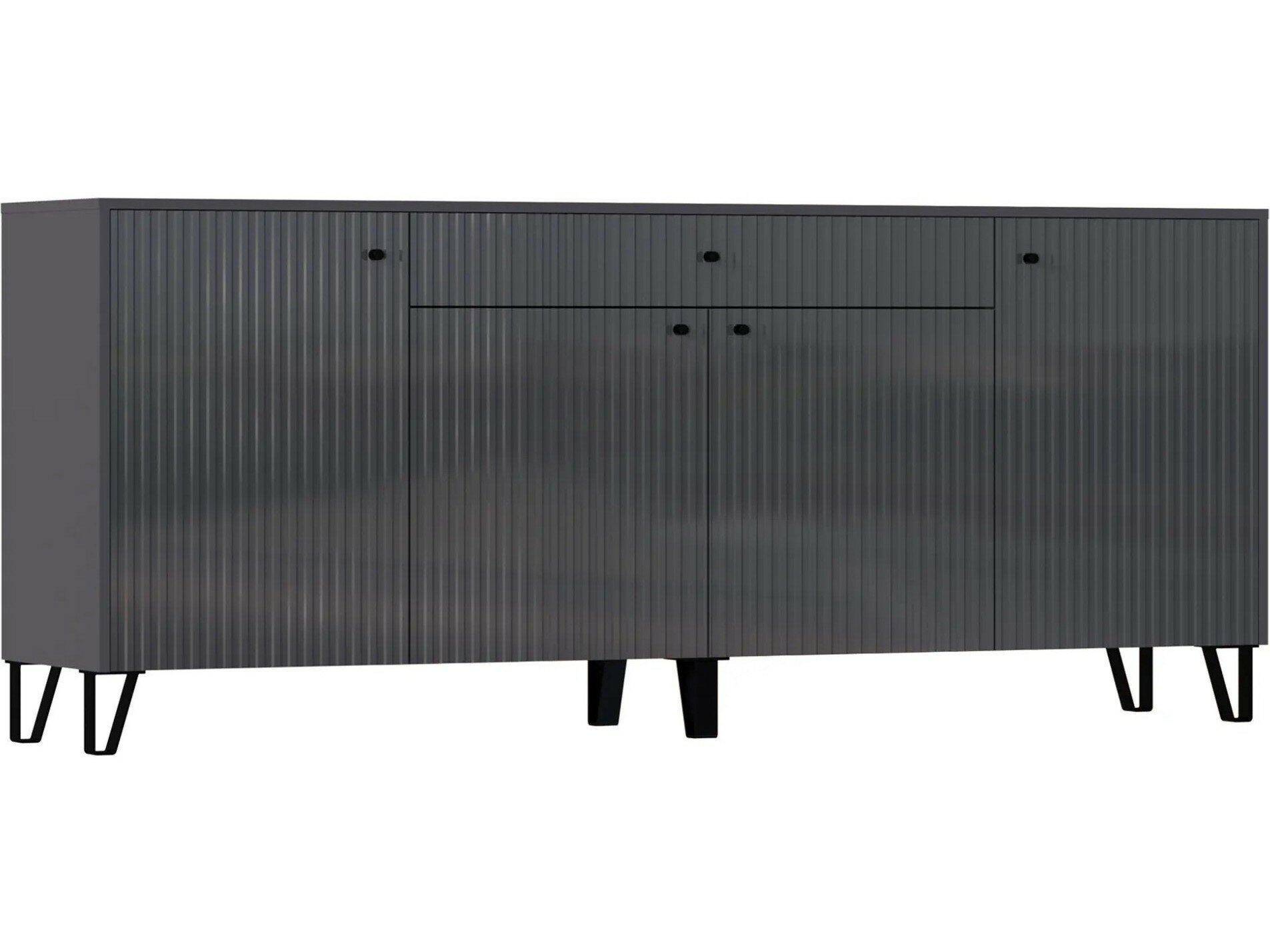 Комод "Оливия" от бренда МиФ, модель 200x42x83, Графит/графит Софт, материал ЛДСП/МДФ, с ножками