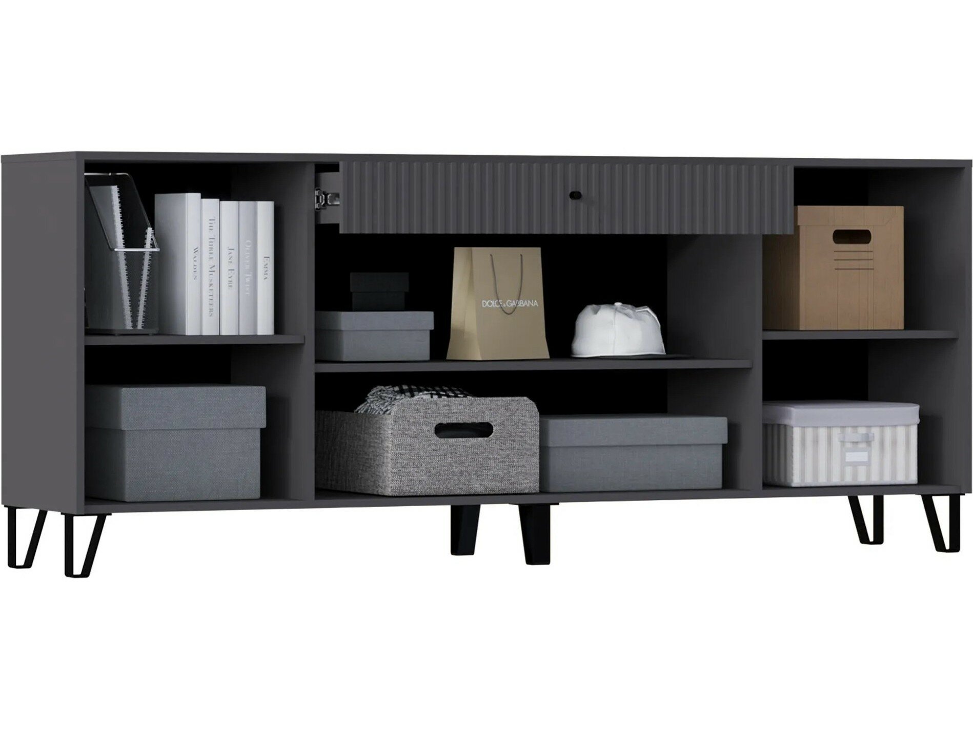ТВ-тумба МиФ "Оливия", малая, ЛДСП/МДФ, 160х46х44.2см, скандинавский стиль, графит /графит софт