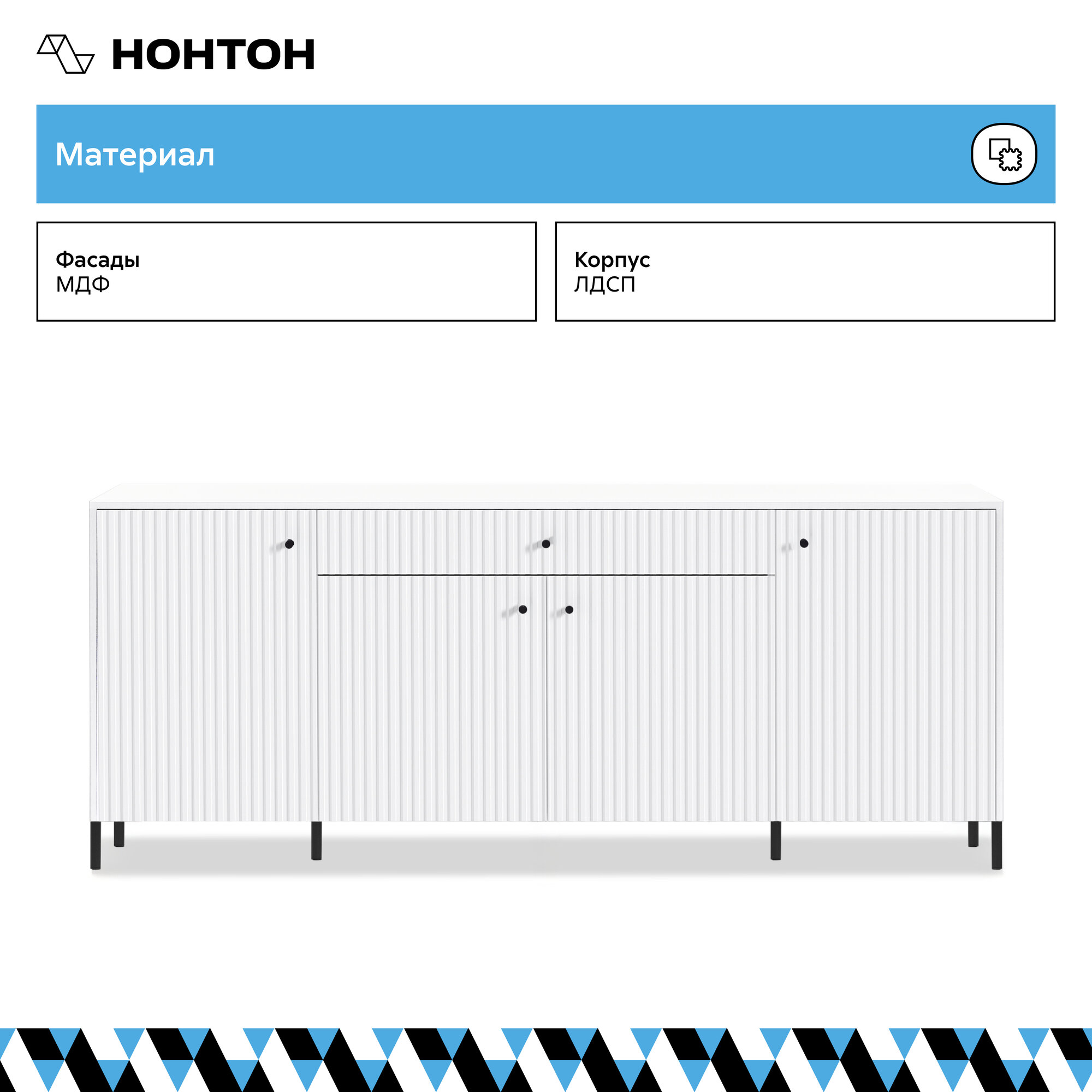 Комод "Оливия" от бренда МиФ, модель 200x42x83, Белый /белый глянец, материал ЛДСП/МДФ, с ножками