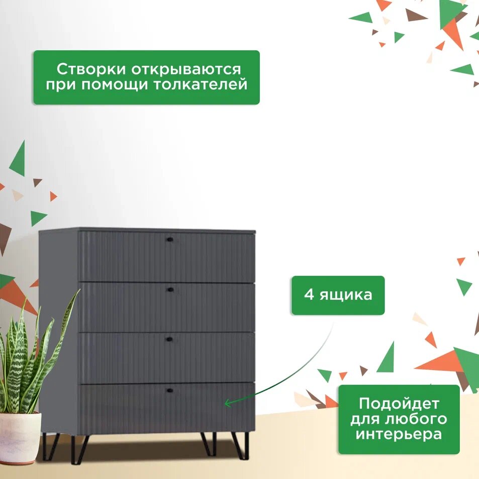 Комод 4-ящ Миф Оливия Графит/графит Софт, МДФ/ЛДСП 850х446х101.8 мм
