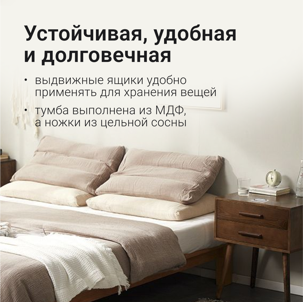 Тумба прикроватная с ящиками Homium Cozy, цвет светлое дерево, размер 42*35*59 на ножках