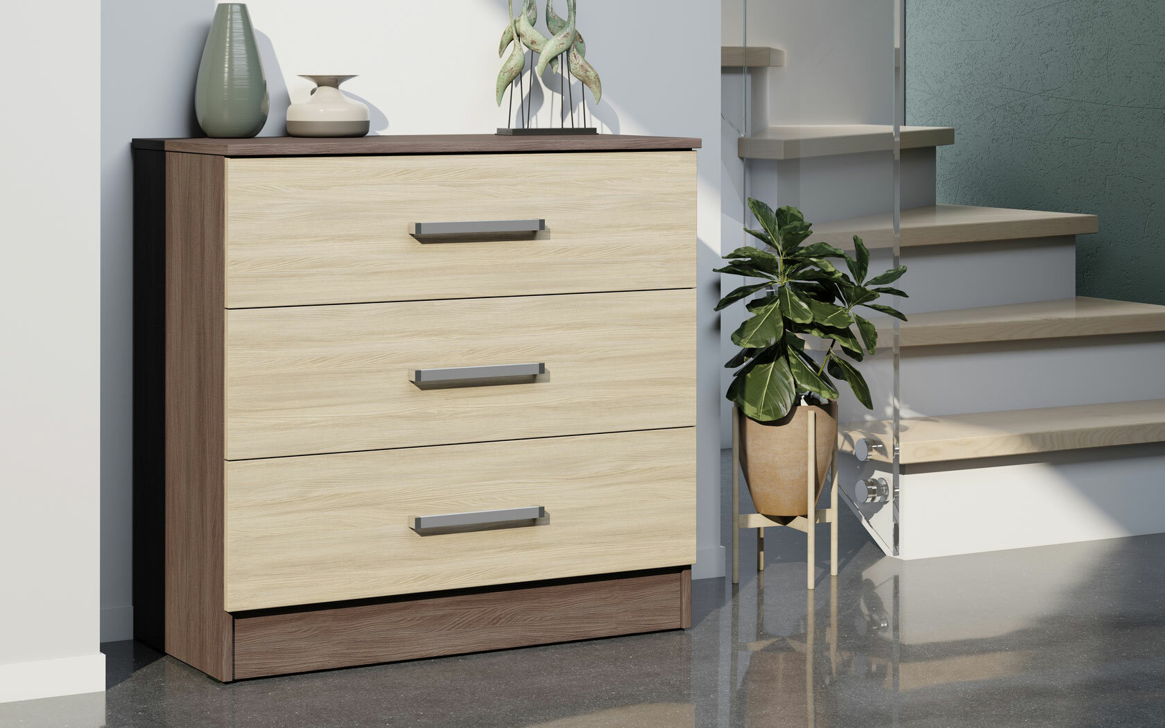 Комод Адель Ясень Шимо темный/светлый, ЛДСП, с ящиками, для прихожей, спальни, гостиной, 826х800х408, ЭРА интересное: