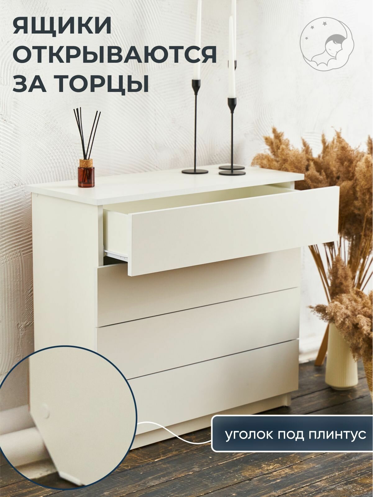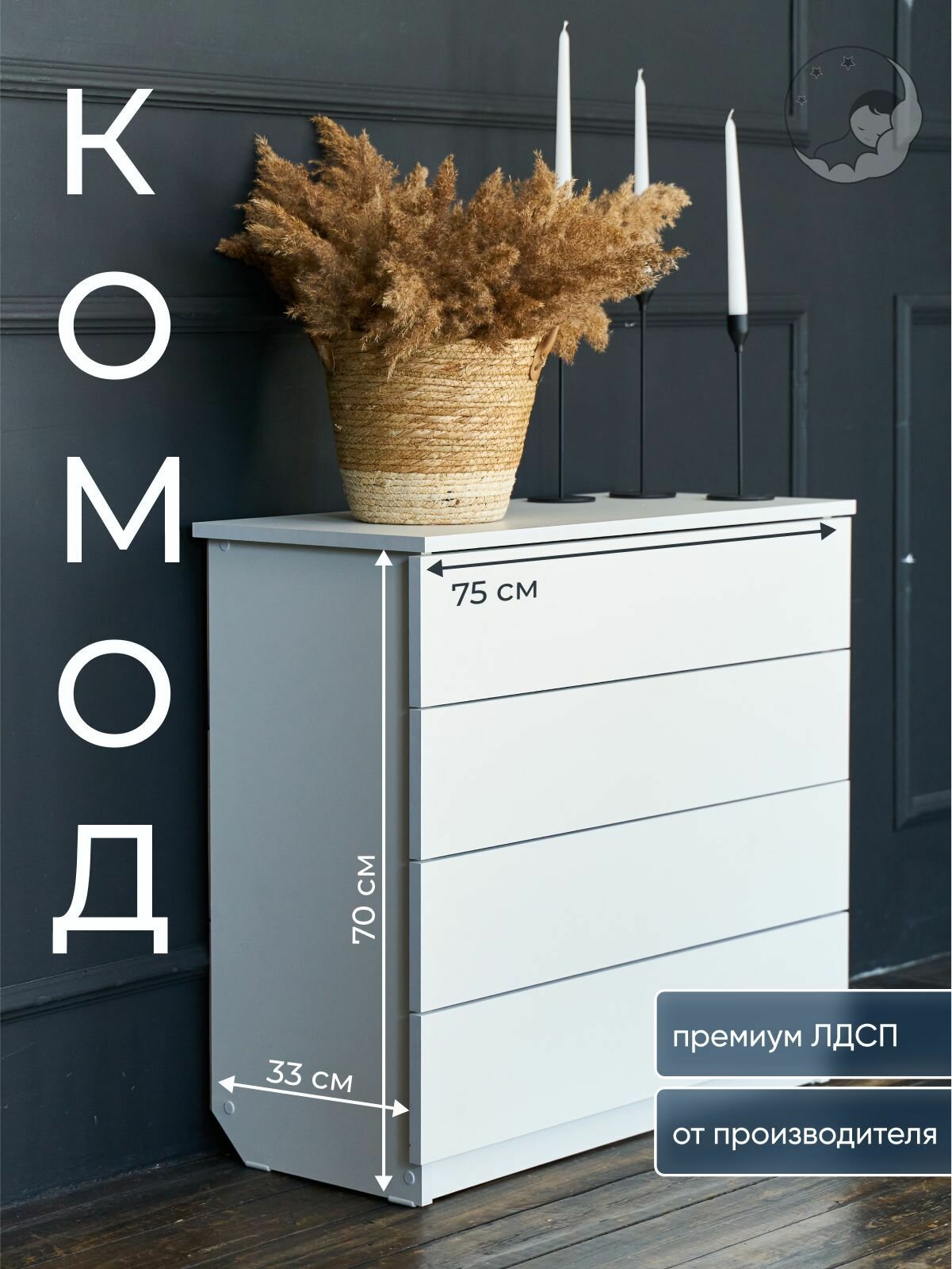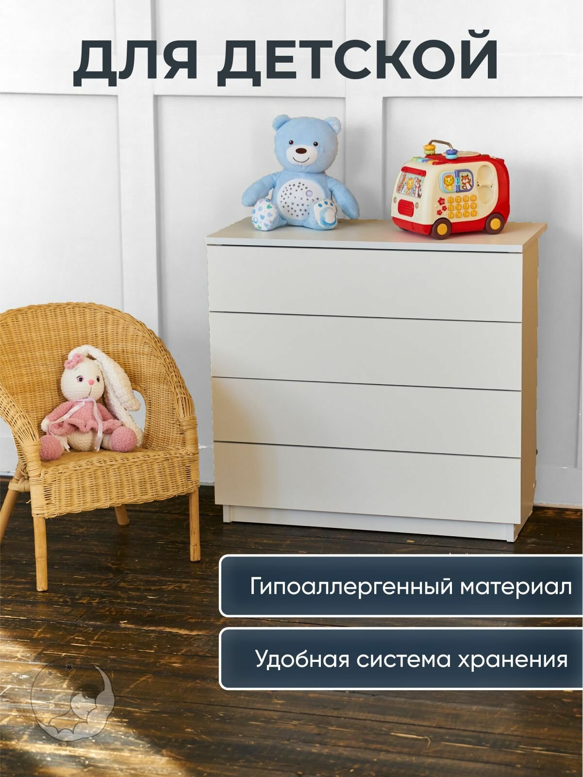 Комод белый, 4 ящ., 75х33х70 см, BambinoBed интересное: