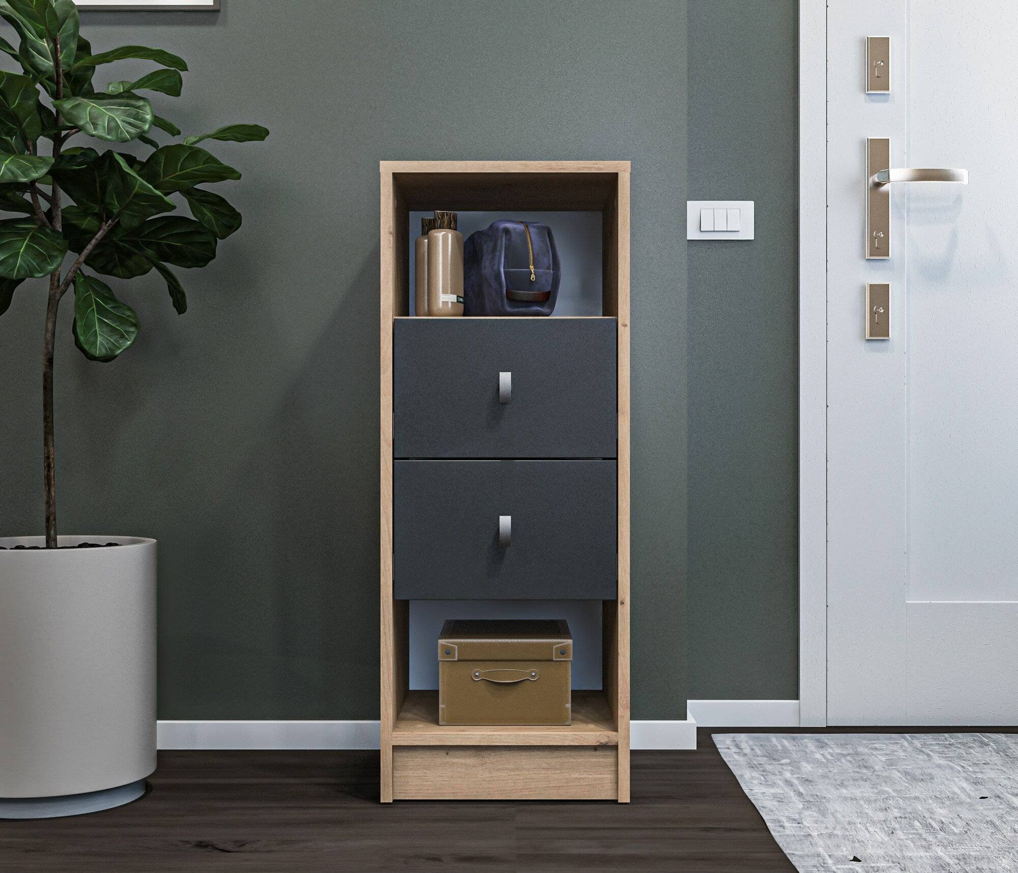 Купить Напольная тумба столплит Сидней СБ-2585/1 с выдвижными ящиками, с полками, в прихожую, в гостиную, в кабинет, в детскую, в спальню, на дачу, в гардеробную, ДСП Дуб дикий/Диамант серый, 35х90х35 см