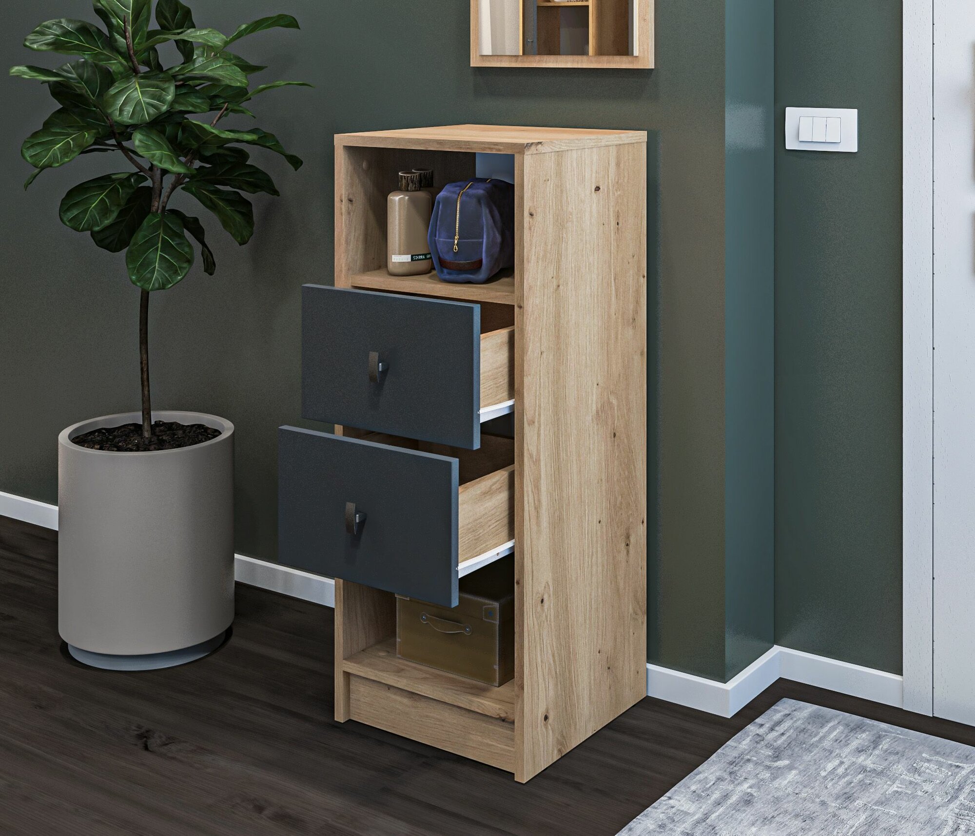 Напольная тумба столплит Сидней СБ-2585/1 с выдвижными ящиками, с полками, в прихожую, в гостиную, в кабинет, в детскую, в спальню, на дачу, в гардеробную, ДСП Дуб дикий/Диамант серый, 35х90х35 см интересное: