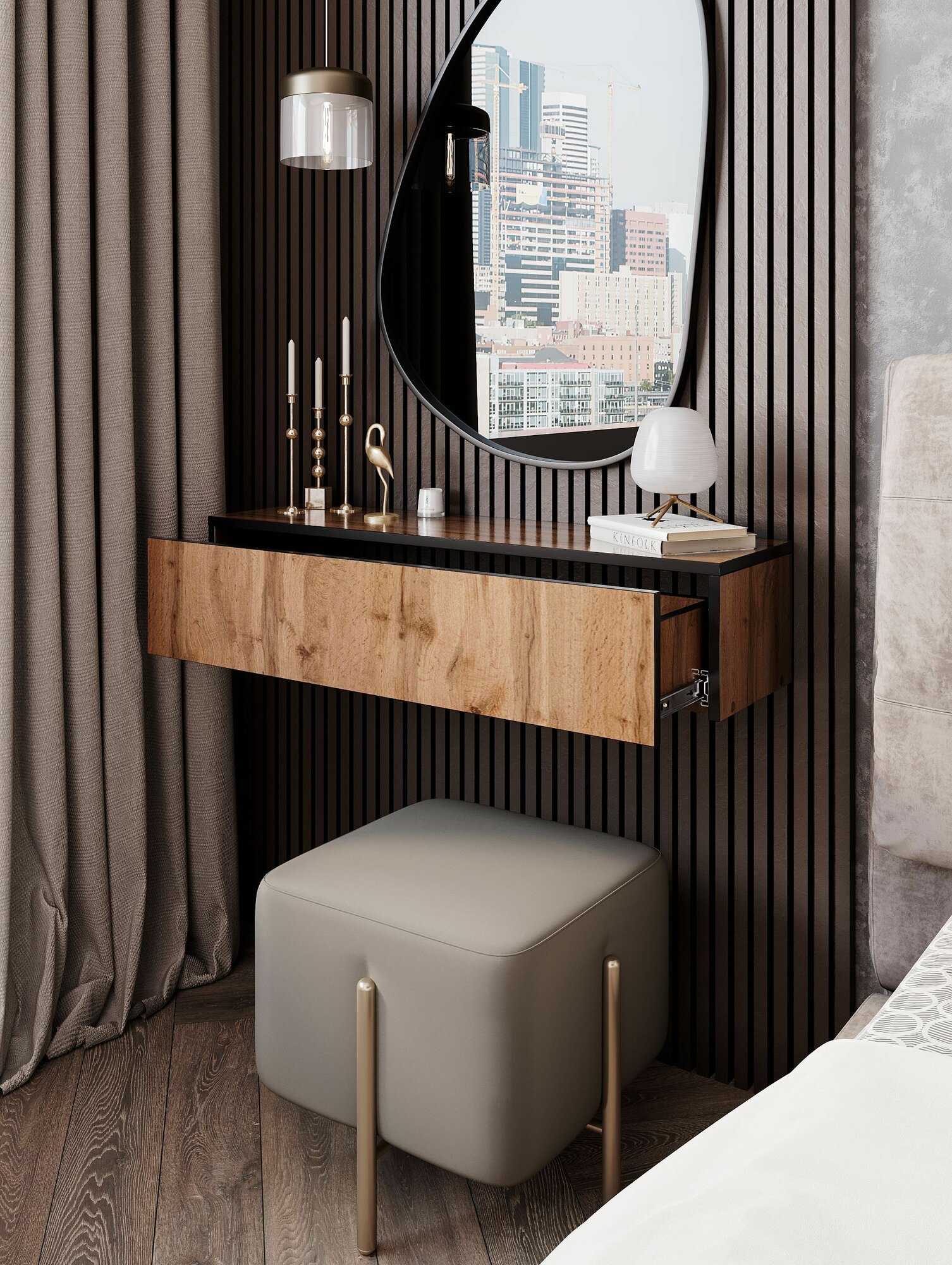 СохранитьТуалетный столик подвесной трюмо в спальню 91 см дуб вотан интересное: