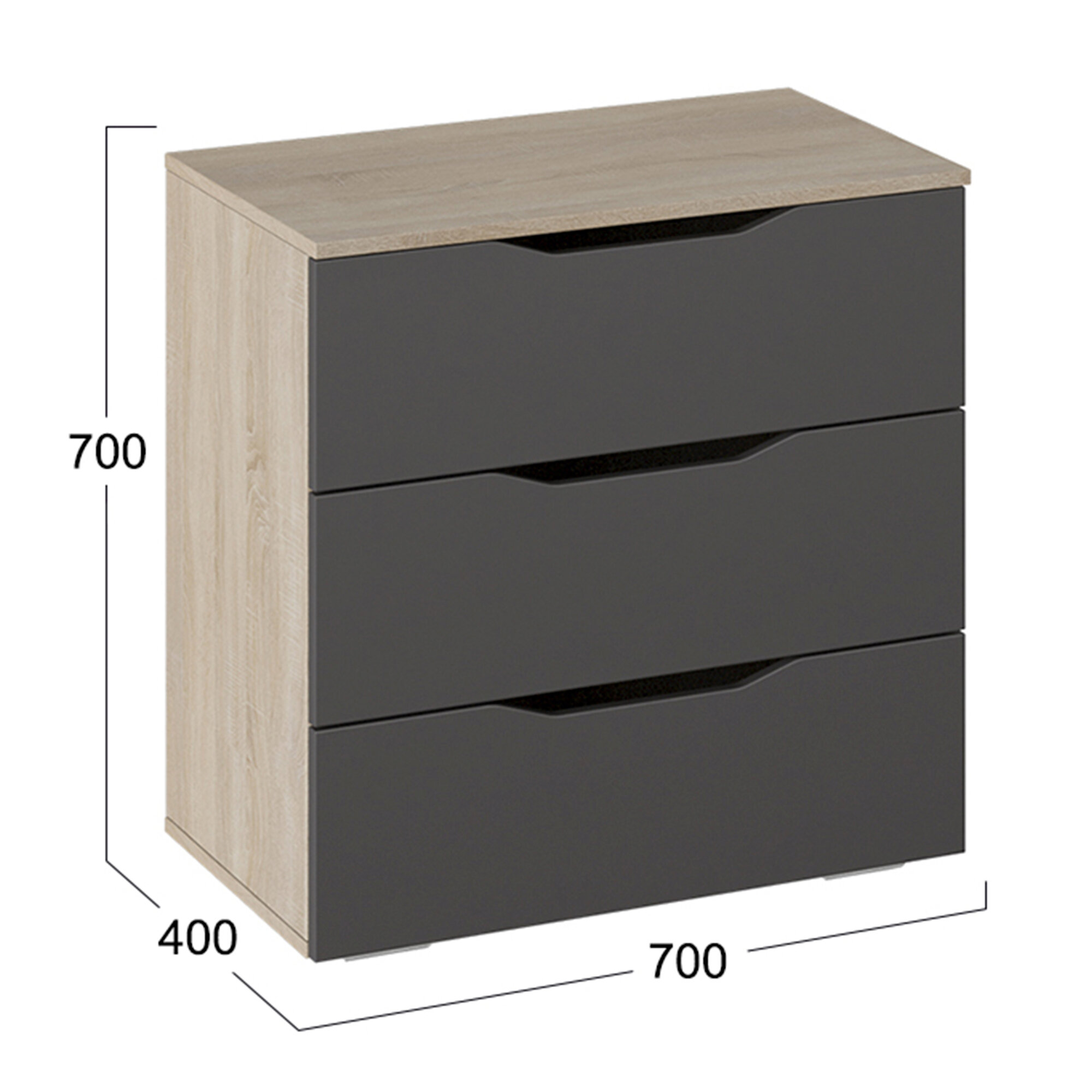 Купить Комод серый 3 ящика без ручек бежевый (ВхДхГ) 70х70х40 см, тип 3