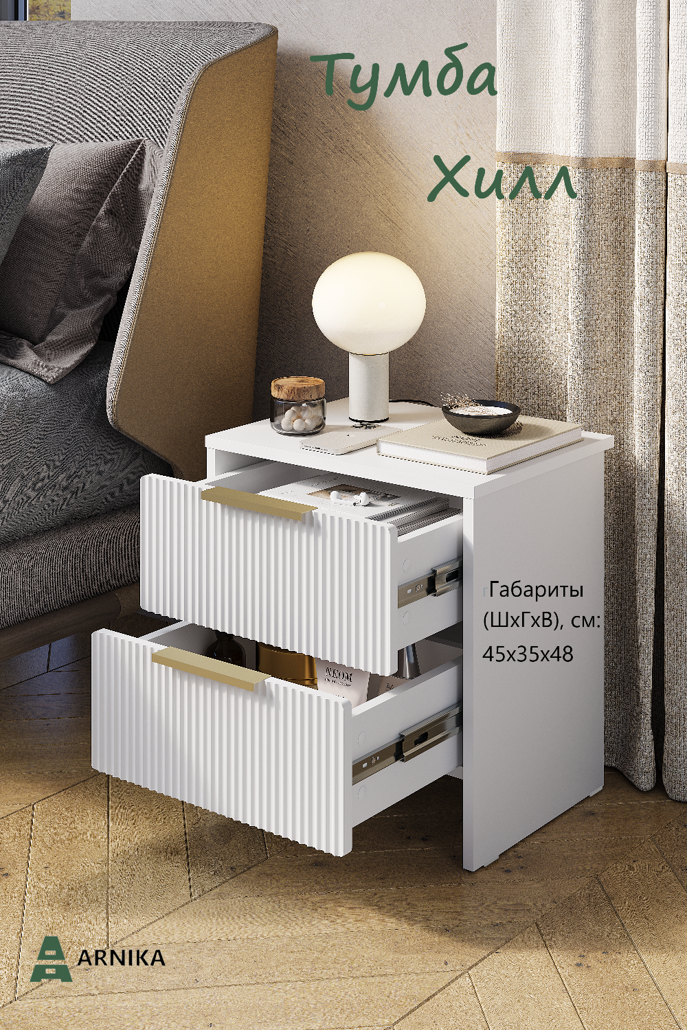 Прикроватная тумба ARNIKA "Хилл" Белая шагрень интересное: