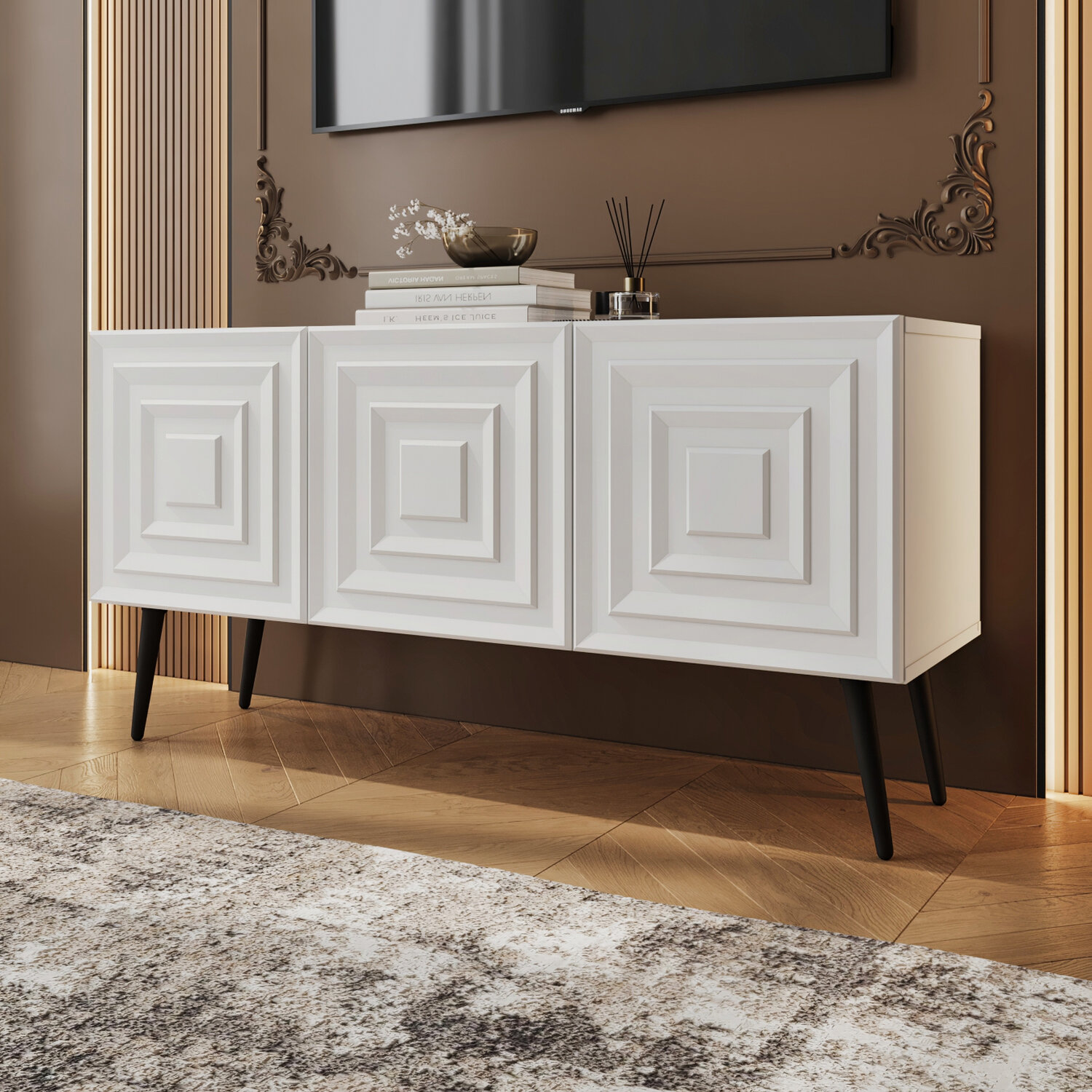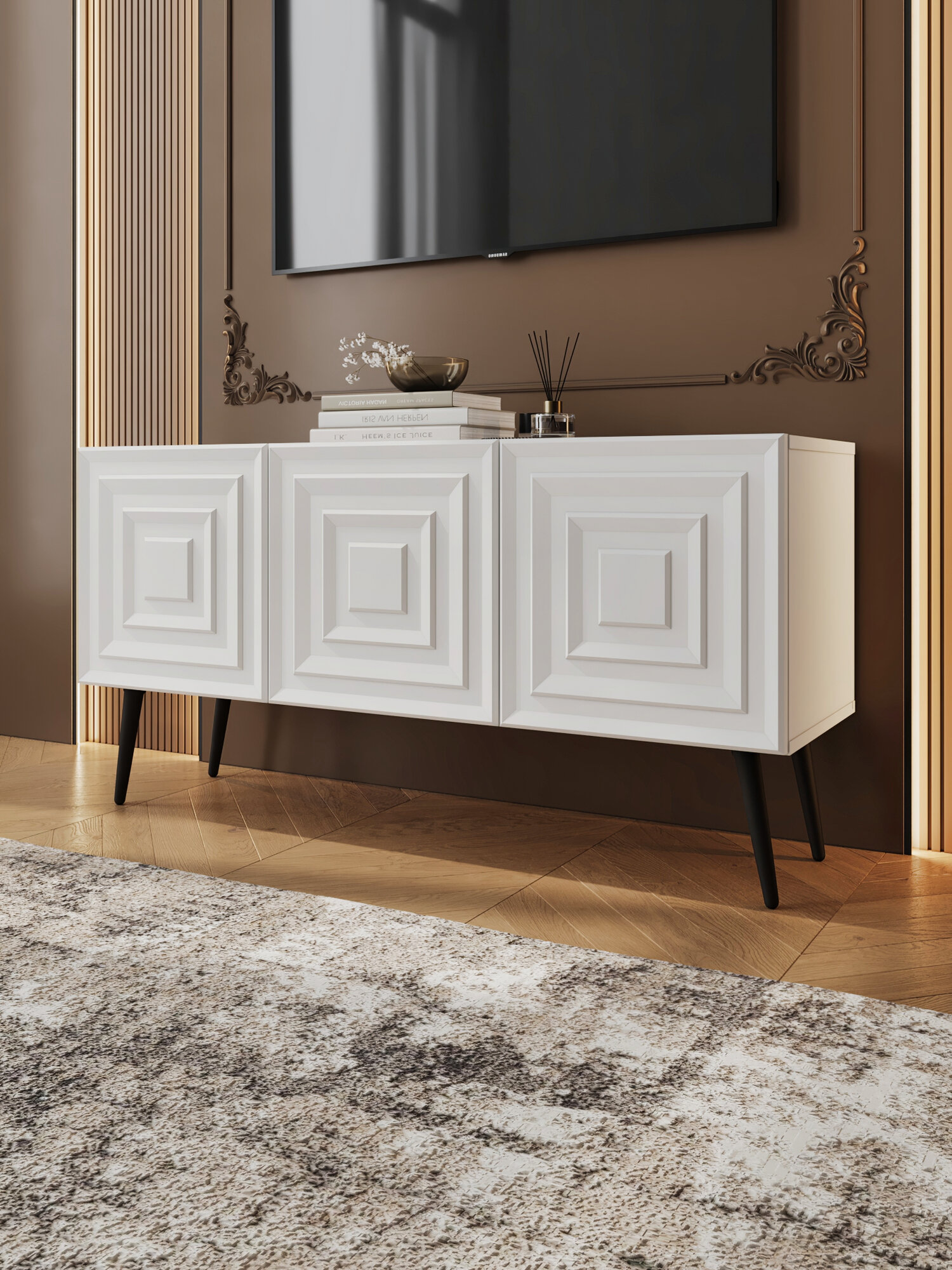 Тумба под телевизор 55 дюймов белая Lazurit Alpes напольная с ящиками с ножками 115x58х36 Soft-touch